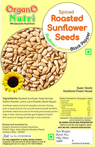 Salt Roasted Sunflower Seeds pudina powder lemon juice powder black pepper powder.