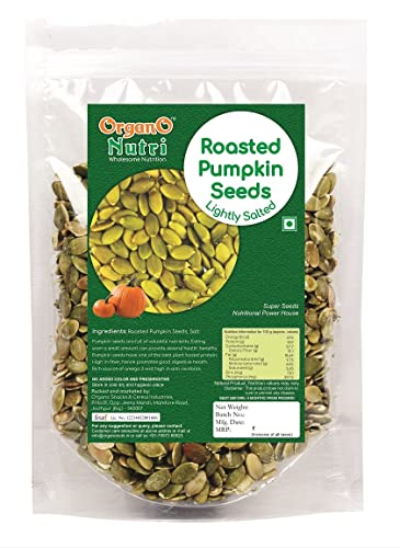 Pumpkin Seeds are a good source of B vitamins magnesium iron and protein. The seeds have high levels of essential fatty acids that help maintain healthy blood vessels and lower unhealthy cholesterol in the blood. "Pumpkin seeds are nutritional powerhouses because they are an excellent source of protein healthy fat. These seeds may appear like any other seed but are extremely beneficial to your overall wellbeing. OrganoNutri Super-Fresh Roasted Pumpkin Seeds are a nutritional powerhouse packed in small packages. Along with the presence of nutrients they serve many health benefits and possess an earthy taste. It is one of the best options for a snack which can be consumed any time of the day. Benefits of Roasted Pumpkin Seeds: Being a rich source of zinc Pumpkin Seeds can be beneficial for promoting the heart health. Pumpkin seeds may help in reducing oxidative stress. OrganoNutri Super-Fresh Roasted Pumpkin Seeds are a nutritional powerhouse packed in small packages. Along with the presence of nutrients they serve many health benefits and possess an earthy taste. It is one of the best options for a snack which can be consumed any time of the day. How to use: You can either consume it as a guilt-free munching snack or add it to soups salads smoothies etc. It can be even sprinkled on top of burgers bread and other such bakery items. Storage Information: Store in a cool dry and dark place away from moisture.