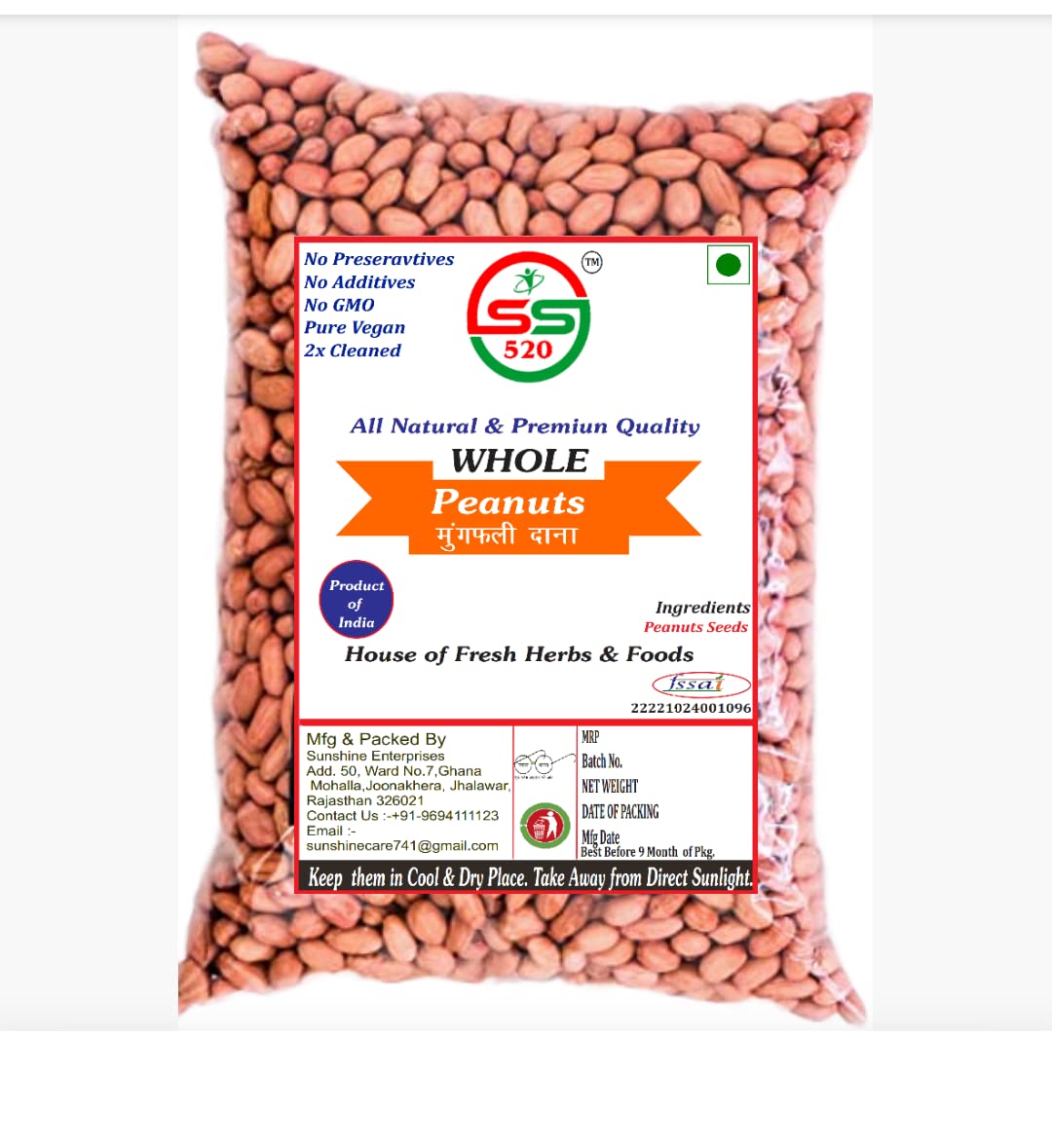 SS520 Raw Peanuts/Fresh & Whole Groundnut Seeds/Mungfali daana (1KG)