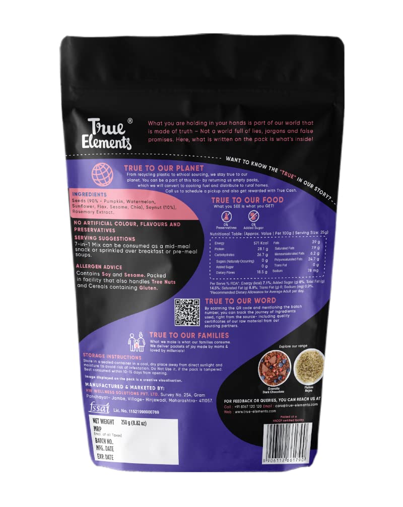 True Elements 7 in 1 Seeds Mix 250g - Edible Seeds | Healthy Seeds | Healthy Snacks | 100% Natural and Roasted Seeds