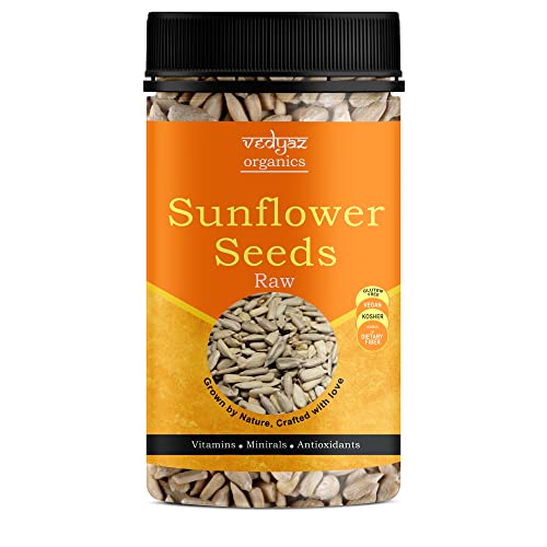 Vedyaz Organics Natural-Organic Sunflower Seeds are one of the healthiest superfood. They are loaded with VitaminsNutrients and Fibers that can provide a substantial amount of Energy and Healthy Fats.With their countless beneficial nutrients these seeds are useful to support your heart bones and beauty needs. Sunflower seeds can be easily incorporated into any food preparation to improve its nutritional quality and to provide a crunchy taste!. Incorporating these seeds in your diet improves heart health mentains body & beauty.