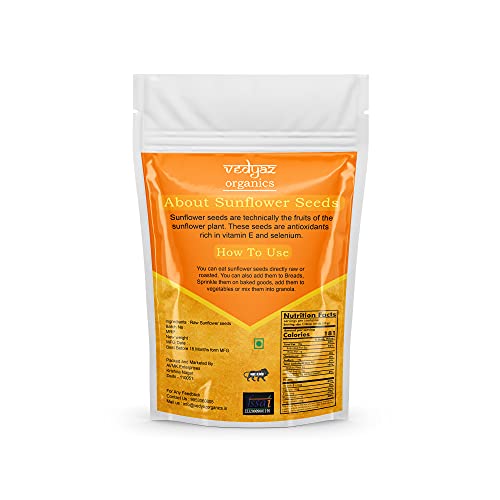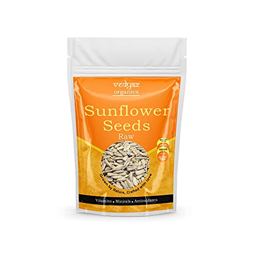Vedyaz Organics Natural-Organic Sunflower Seeds are one of the healthiest superfood. They are loaded with VitaminsNutrients and Fibers that can provide a substantial amount of Energy and Healthy Fats.With their countless beneficial nutrients these seeds are useful to support your heart bones and beauty needs. Sunflower seeds can be easily incorporated into any food preparation to improve its nutritional quality and to provide a crunchy taste!. Incorporating these seeds in your diet improves heart health mentains body & beauty.