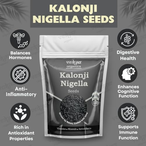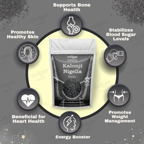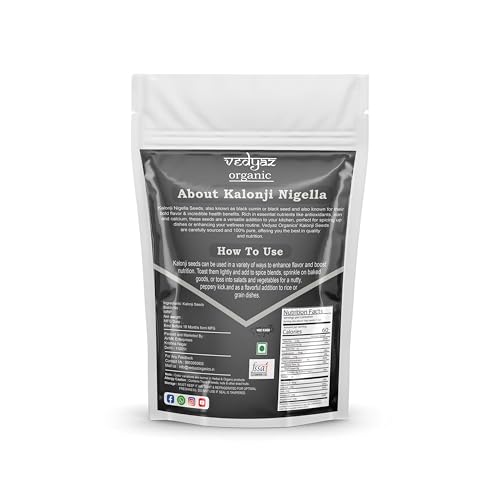 Vedyaz Organics Kalonji Seeds are a time-honored treasure celebrated for their myriad health benefits. Harvested from the finest black cumin plants our kalonji seeds are 100% natural and packed with essential nutrients that can enrich your daily diet. Known for their slightly bitter peppery flavor these seeds are perfect for adding depth to your culinary creations while promoting overall wellness. At Vedyaz Organics we prioritize your health and safety. Our kalonji seeds are meticulously sourced cleaned and packaged under the highest hygiene standards to ensure purity and freshness. Whether you’re enhancing your meals or seeking natural remedies our kalonji seeds offer the perfect blend of tradition and quality.