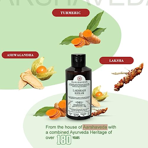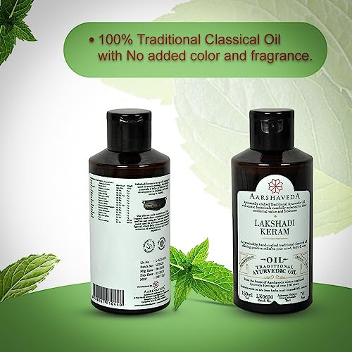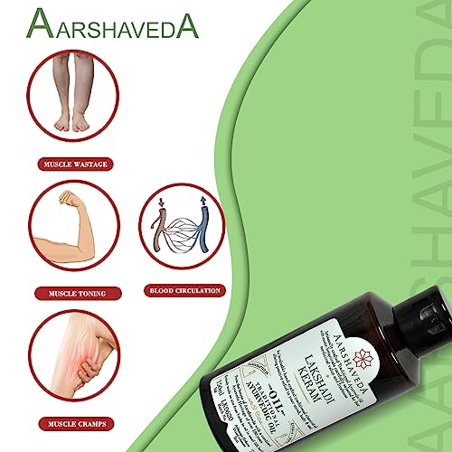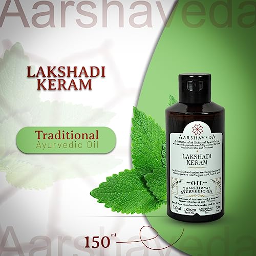 Aarshaveda Lakshadi Keram Oil 150ml - 100% Traditional Ayurvedic Herbal Massage Oil, Stress Relief for Mind, Body & Soul, Relieves Body Pain, Cramps, Enhances Blood Circulation & Relaxation