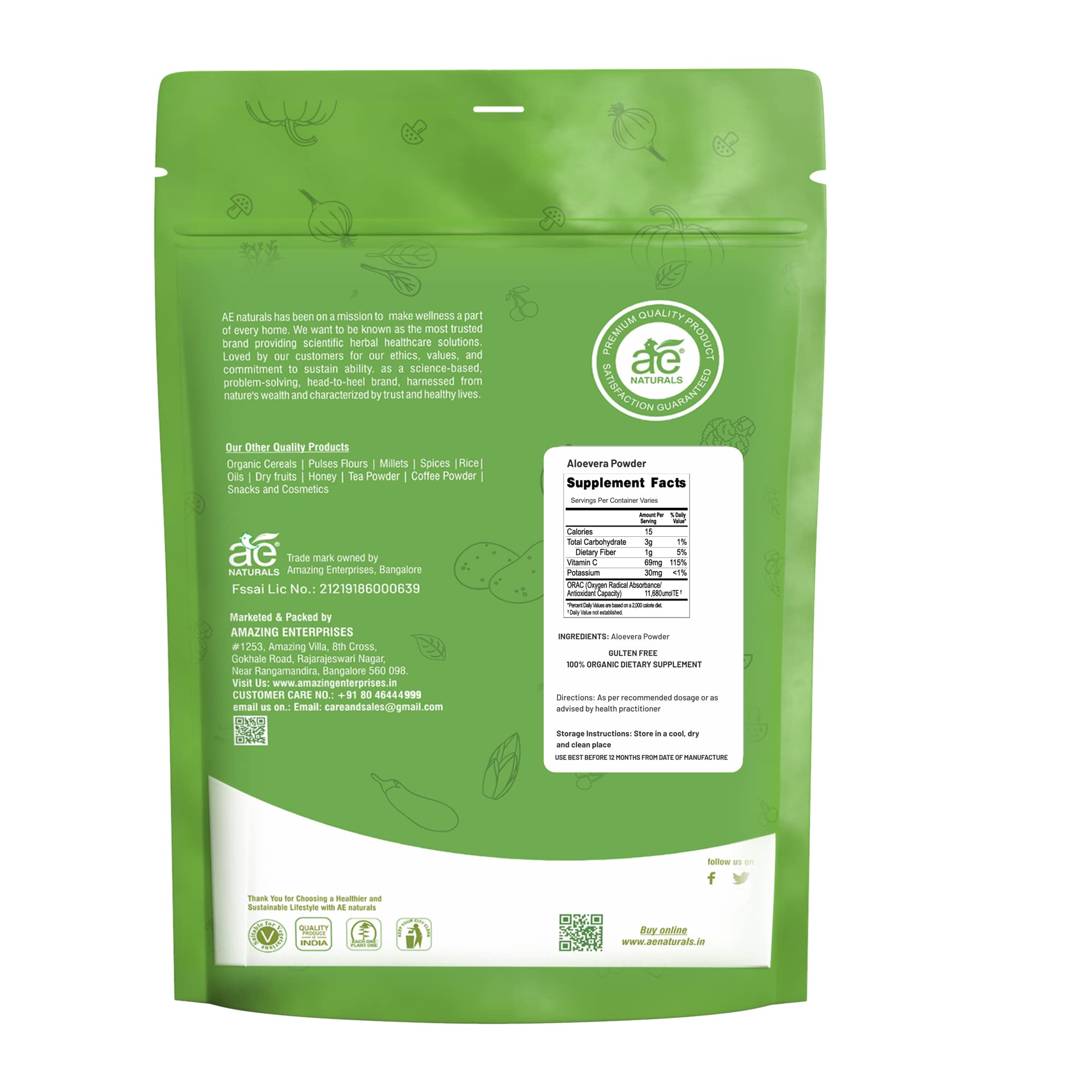 Aloe Vera Powder: Aloe Vera Powder is enriched with the goodness of Aloe Vera is a natural rescue for unhealthy and dry hair. With absolutely pure extracts and no artificial inclusion of chemicals it is the perfect boost to healthy and shining hair. Treats unhealthy scalp with the goodness of aloe Vera It is highly favorable for hair growth Adds volume to hair and enriches its texture Nourishes the scalp with required nutrition. Good for skin too with its anti-aging and wrinkle-prevention features. It also gives possible effect on constipation Obesity Burning pain in the mouth early research suggests that taking 400 mg of a chemical that comes from aloe four times daily does improve immune function in people with human immunodeficiency virus (HIV). Directions of use: Doses of powder range from 100-1000 mg daily. Doses of juice range from 15-150 mL daily.