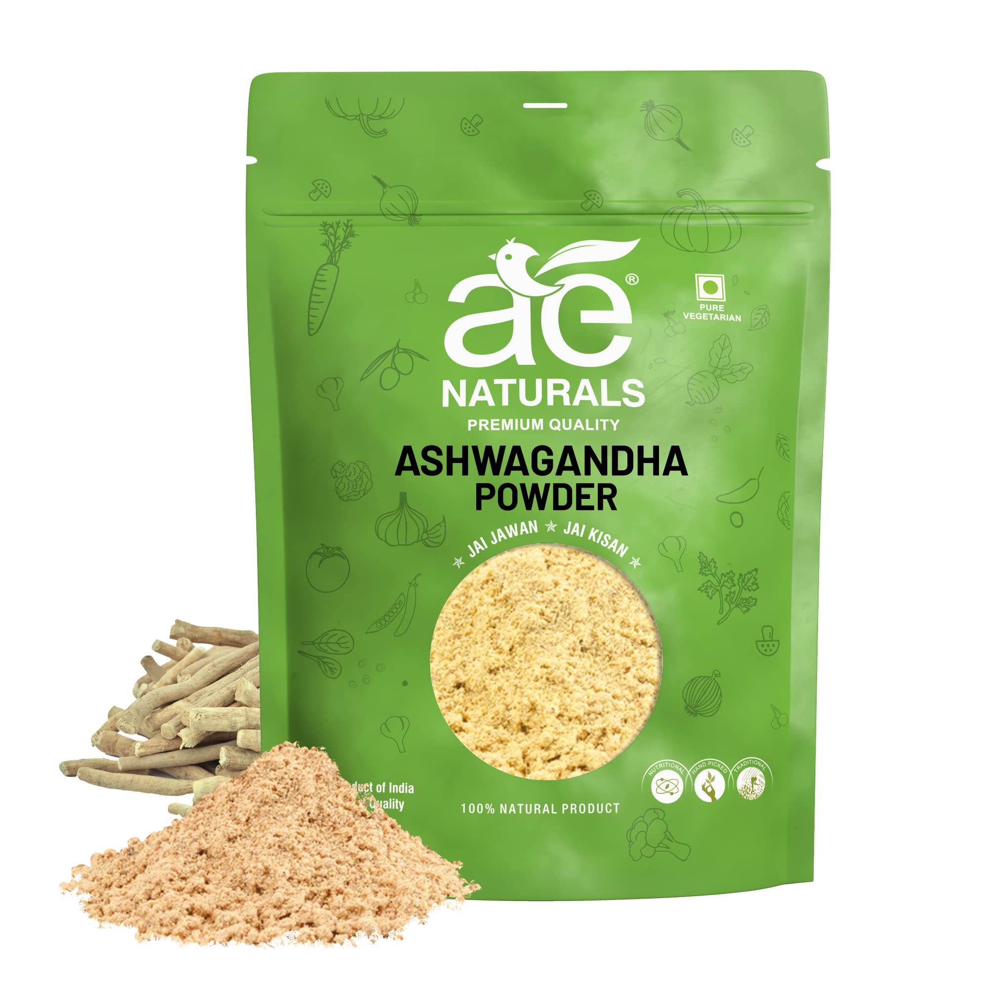 AE Naturals Ashwagandha Powder 800g Organic India Certified | Vegan Superfood for Stress Relief Immunity Boost Herbal Protein Height Growth Boosted Stamina & Mental Calmness | Support for Stress Anxiety Issues and Overall Well-being (Pack of 1)