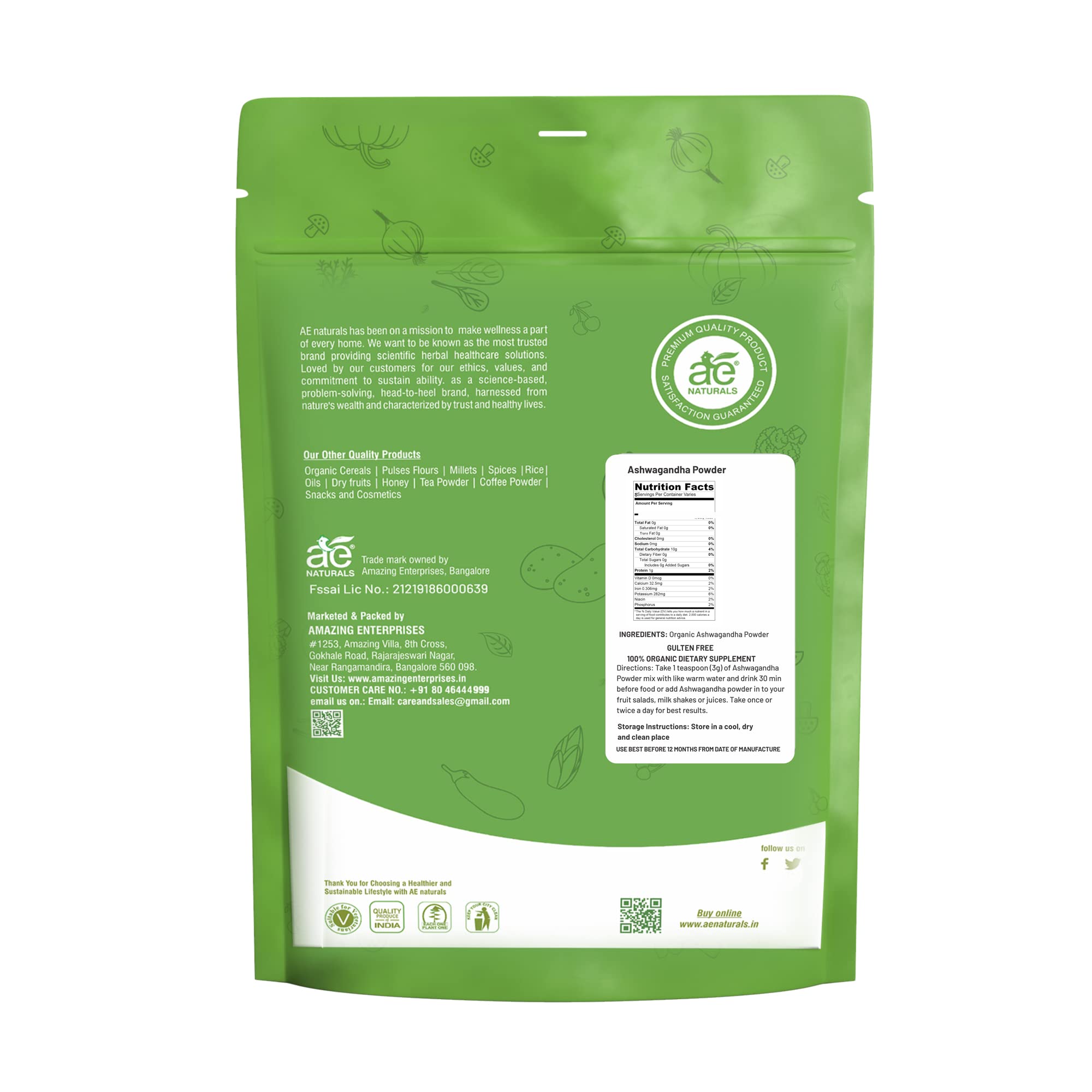 Vegan and Superfood: AE Naturals Organic Ashwagandha Powder is a vegan-friendly superfood embracing a holistic approach to well-being. This powder provides essential nutrients while aligning with your vegan lifestyle. Raise your nutrition game with this c
