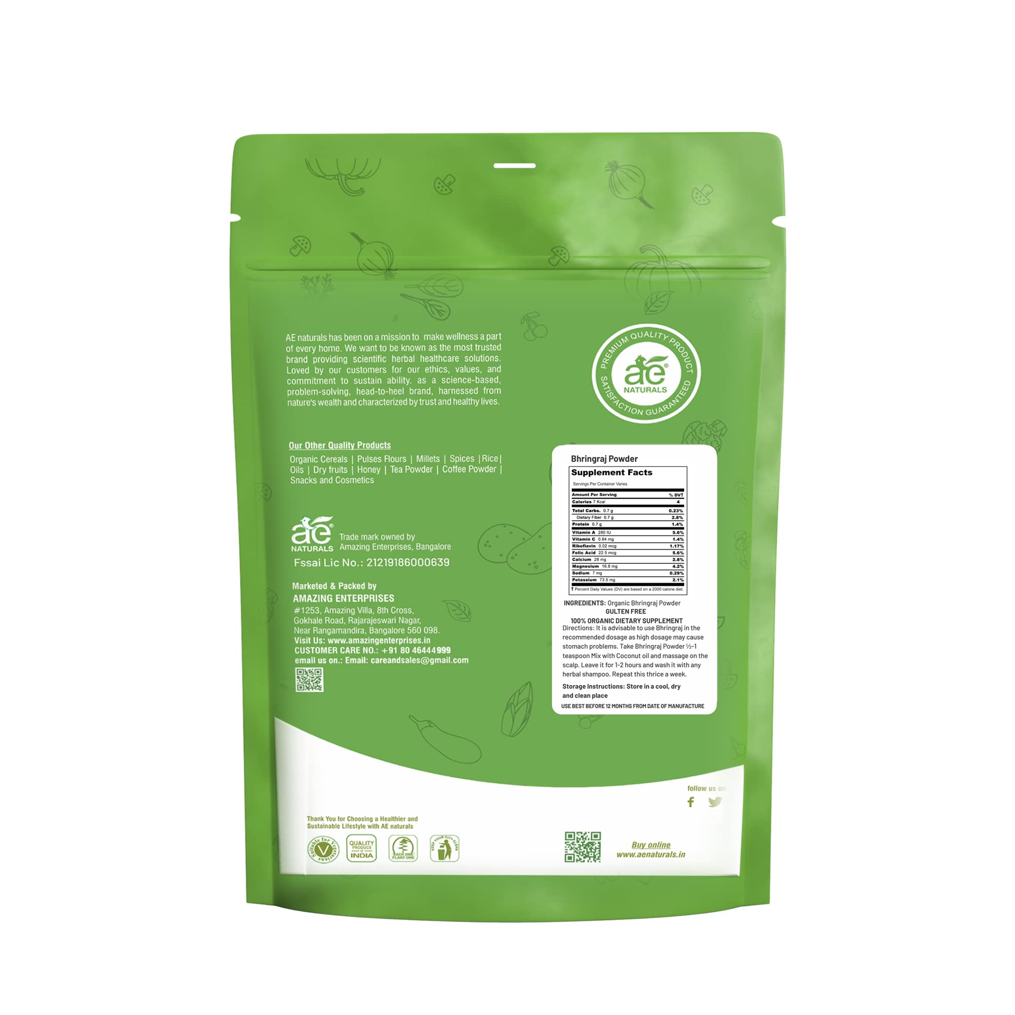 Bhringraj Powder: Bhringraj is also known as Kesharaj which means âRuler of the hairâ. It is rich in proteins vitamins and antioxidants which help protect the body against certain infections. Bhringraj powder along with a carrier oil (like coconut oil) can also be used to manage skin infections and allergies due to its antimicrobial property. Taking Bhringraj powder along with water helps in the management of cholesterol levels due to its antioxidant and anti-inflammatory properties. It also protects the liver cells against damage caused by free radicals due to its hepato protective and antioxidant properties. Taking Bhringraj leaves in the powdered form increases the production of urine due to its diuretic property and therefore helps to manage urinary complications. Bhringraj is also beneficial in managing the symptoms of gastrointestinal disorders (such as diarrhea and dysentery) like contractions or spasms in the stomach intestine or urinary bladder due to its antispasmodic property. Directions of use: It is advisable to use Bhringraj in the recommended dosage as high dosage may cause stomach problems. Take Bhringraj Powder ½-1 teaspoon Mix with Coconut oil and massage on the scalp. Leave it for 1-2 hours and wash it with any herbal shampoo. Repeat this thrice a week.
