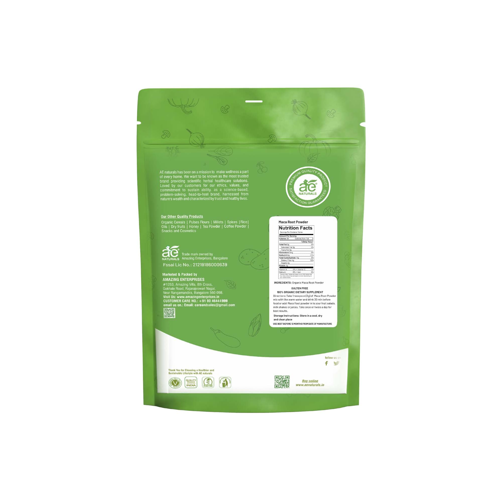 AE Naturals Maca Root Powder rich in Iron helps in managing Stress 800g