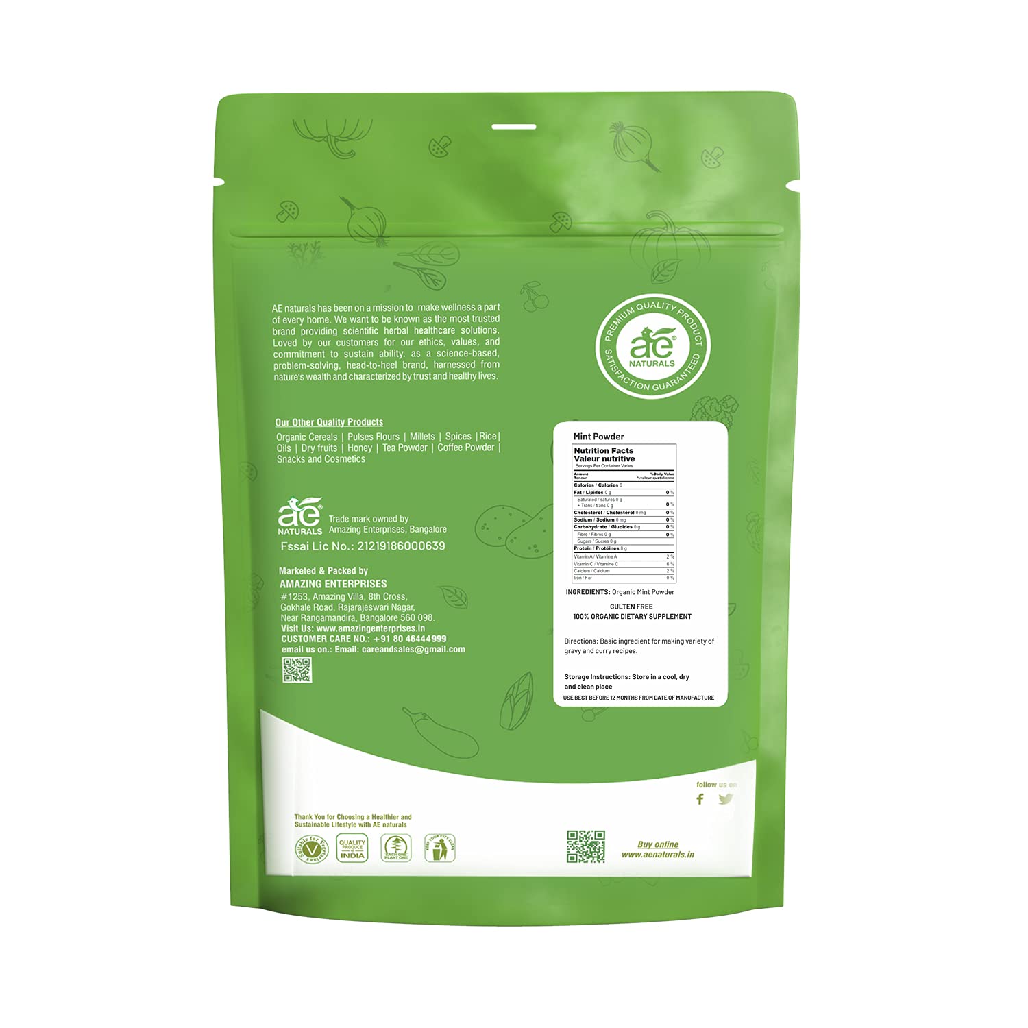 Mint Powder: The herb mint has various health and beauty benefits. Mint is rich in anti-bacterial properties and is great for skin that needs extra care and treatment. It is known for its anti-inflammatory properties and used as a cleanser toner astringent and moisturizer. It cleanses and tightens skin pores and fights acne & rash. It also helps to reduce dark circles and puffiness of the eyes. Regular use of mint based oil helps to eliminate lice. It also cools the scalp thereby maintains oil balance and prevents dandruff. Directions of use: For hair Mint powder can be mixed with water and used as a perfect chemical free conditioner for hair and For Skin make a paste out of mint powder and rose water. Apply the paste on the skin to reduce open pores and to remove acne and pimples. It is also used for salad dressings dips marinades and hamburgers. Soothing the digestive tract and if you are having stomach ache then it can be of great help.