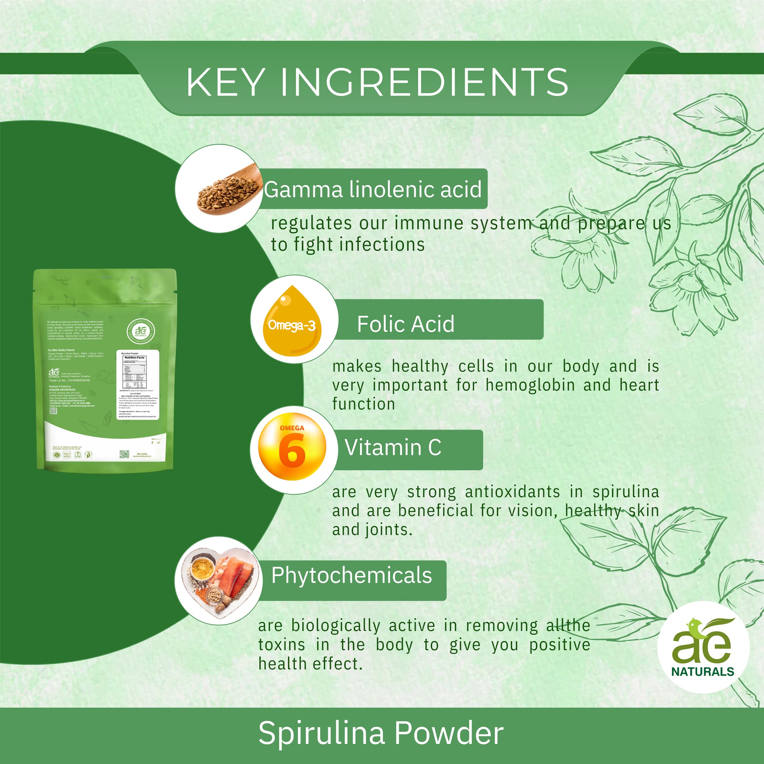 HomeHealth & PersonalDiet & NutritionHerbal FormulationsAE Naturals Organic Spirulina Powder 250g Herbal Spirulina Protein Powder for Men and Women | Micro Superfood Rich in Protein Vitamins & Minerals for Daily Health & Wellness Pack of 1
