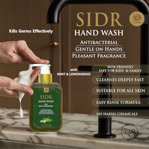 Experience the refreshing power of Al Masnoon Sidr Hand Wash with Mint & Lemongrass an formula designed for ultimate cleanliness and invigorating scent. This 250ml hand wash effectively eliminates germs and impurities providing a deep clean while ensuring your hands feel soft and nourished. Infused with the natural goodness of sidr mint and lemongrass this hand wash not only offers superior antibacterial protection but also leaves a refreshing fragrance that revitalizes your senses. Perfect for daily use it promotes good hygiene practices while enhancing your handwashing experience. With its gentle yet effective formulation Al Masnoon Sidr Hand Wash is suitable for all skin types making it a must-have addition to your home or workplace. Keep your hands clean fresh and fragrant with this luxurious hand wash that elevates your hand hygiene routine