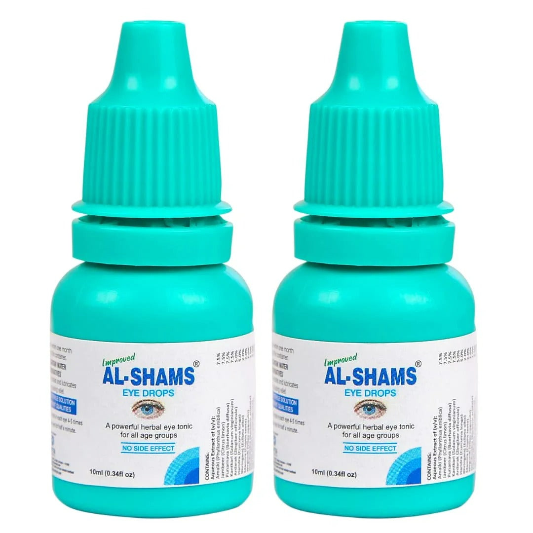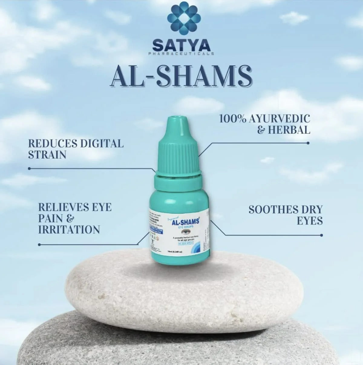 Al-Shams Eye Drops: 10 mlAl-Shams Eye Drops is a unique Ayurvedic supplementThis antiseptic sterile solution is a powerful eye tonic with non-irritant qualities.Al-Shams Eye Drops may works remarkably in protecting the eyes from adverse environmental conditions comprising dust, excessive heat, fumes, smoke, pollution, humidity, dryness, and exposure to the digital life.Legal Disclaimer: Statements regarding dietary supplements have not been evaluated by the FDA and are not in