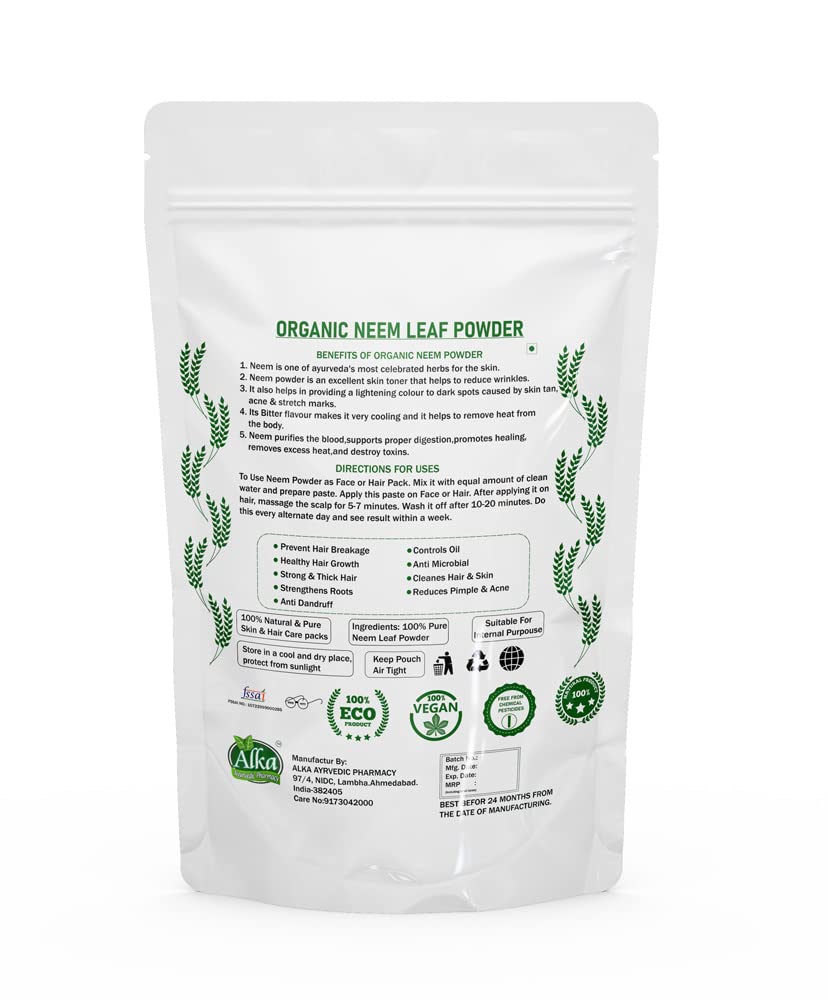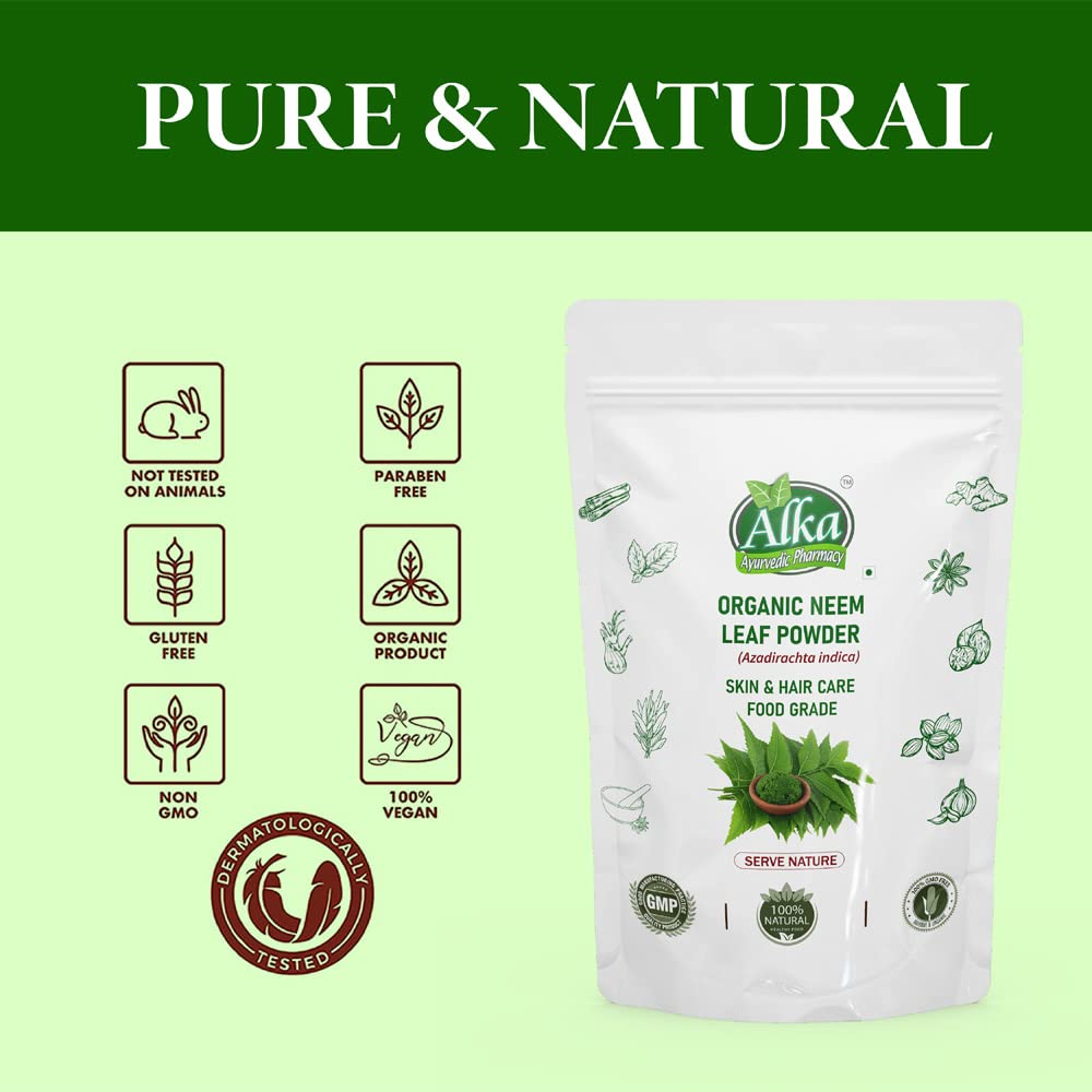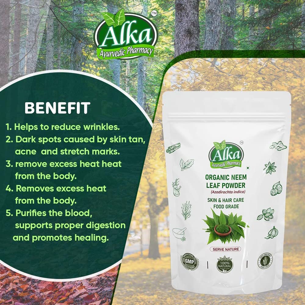 Pure & Natural Neem Leaves Powder Neem has been on earth for over 5000 years. Neem leaves are one of the most common elements used in traditional Ayurvedic remedies. Neem leaves are considered safe to for various ayurvedic and cosmetics formulations. In the thousands of years that people across India have been taking neem there have never been any reports of negative side effects from its leaves. Neem leaf is an essential ingredient in many Ayurvedic remedies. Indians have known for thousands of years that taking neem has many benefits. It is known to stimulates the immune system detoxifies the blood generally promotes a healthy circulation respiratory and digestive system. It is also very popular in cosmetics formulations for hair and skin.