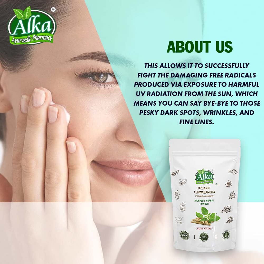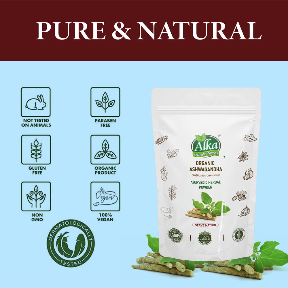 100% Organic Free from pesticides chemicals or additives Processed in gluten free environment and processing unit Processed in Dry Environments-Ashwagandha grows ideally in dry and gluten free environments. These dried conditions are used for preservation of Ashwagandha roots. WORKS AS A SKIN TONER-A toner is an essential part of any womanâs skincare regimen and Ashwagandha is a wonderful skin toner which helps in cleansing the skin and shrinking the pores.