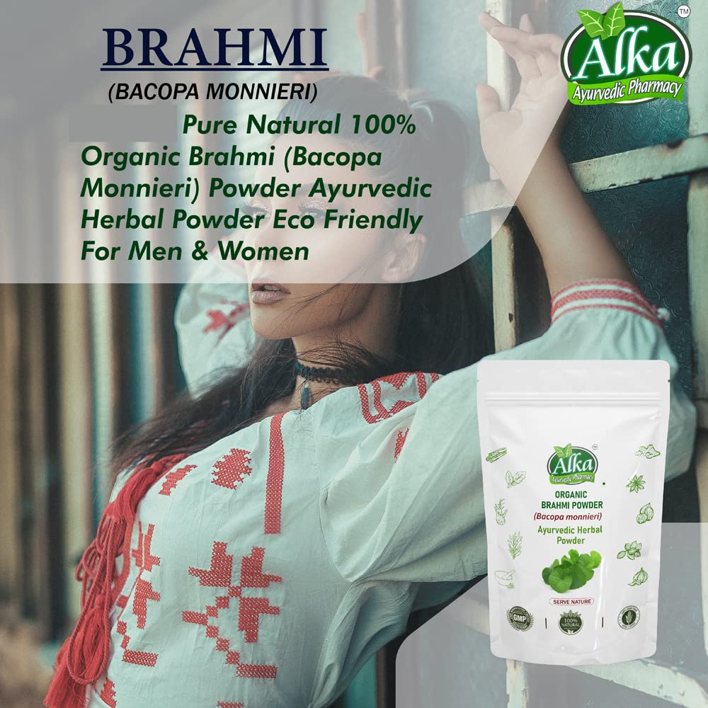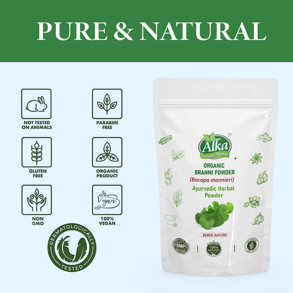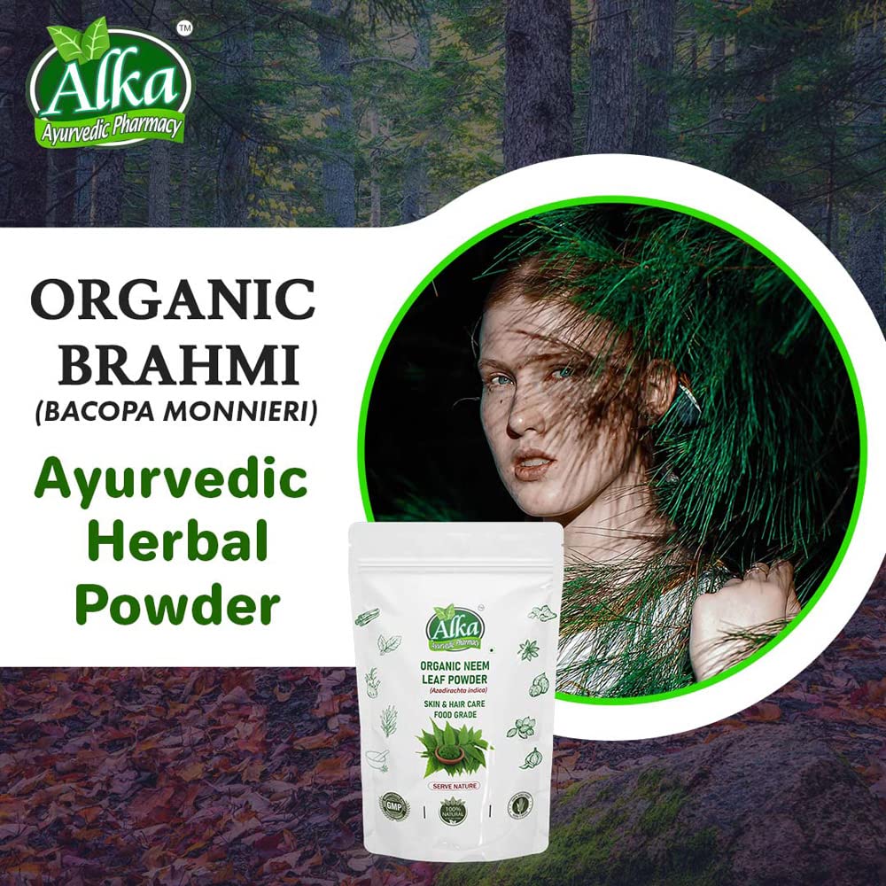 Organic and Natural Grown in the wetlands of Southern and Eastern India Brahmi is a highly revered ayurvedic herb acclaimed as a potent mental tonic (nootropic) Brahmi literally means 'that which improves intelligenceâ. Srotamsi Brahmi Powder is made using 100% Organic herb and is free from any artificial chemicals or colors It is known to improve certain brain chemicals that are involved in thinking learning and memory thus enhancing cognitive abilities. It is also known for effective skin and hair care. Brahmi can nourish the scalp efficiently and turns it healthier. The presence of antioxidants help to dispel toxins from the body. Regular consumption may help in maintaining overall healthy body and mind. It is known to rejuvenate the mind and can provide better concentration to relax our mind. This supports in the management of stress & anxiety. Being in natural powder form without any additives it can be used for both consumption and hair and skin care.
