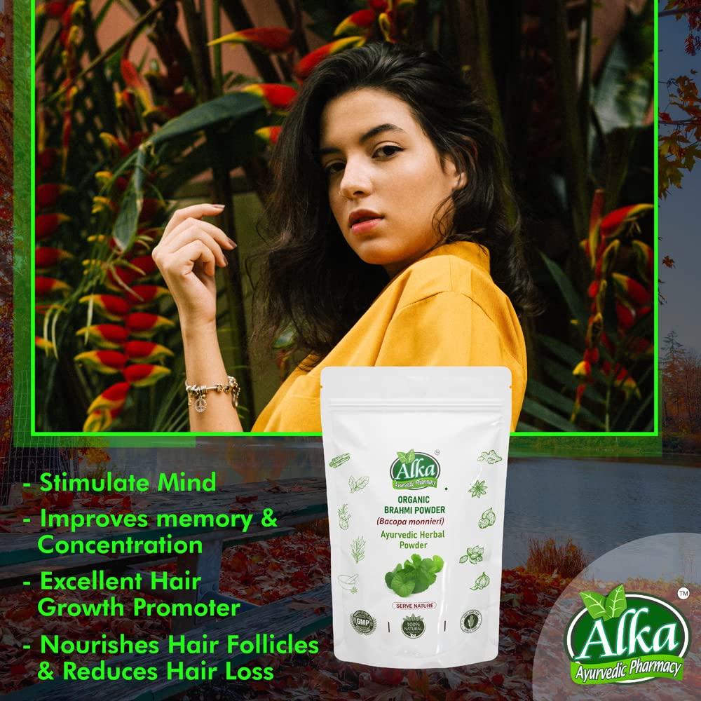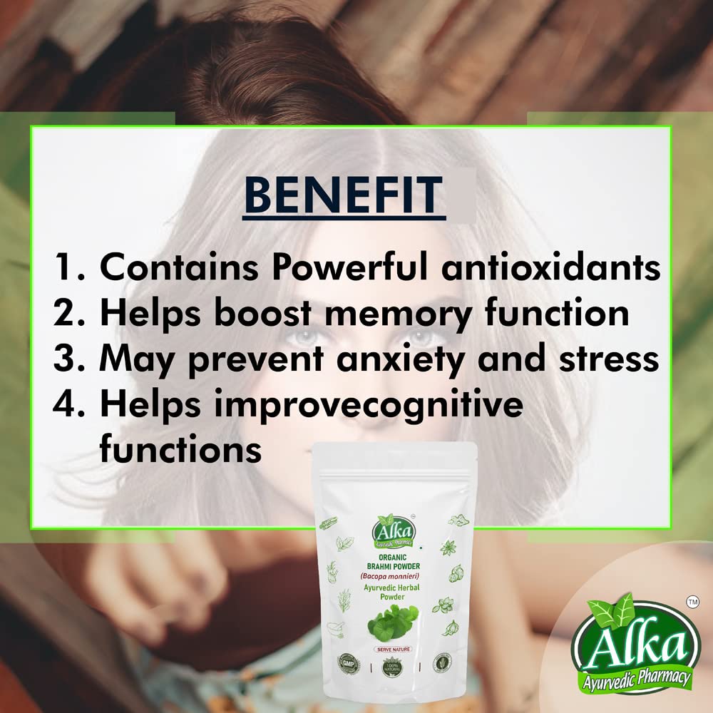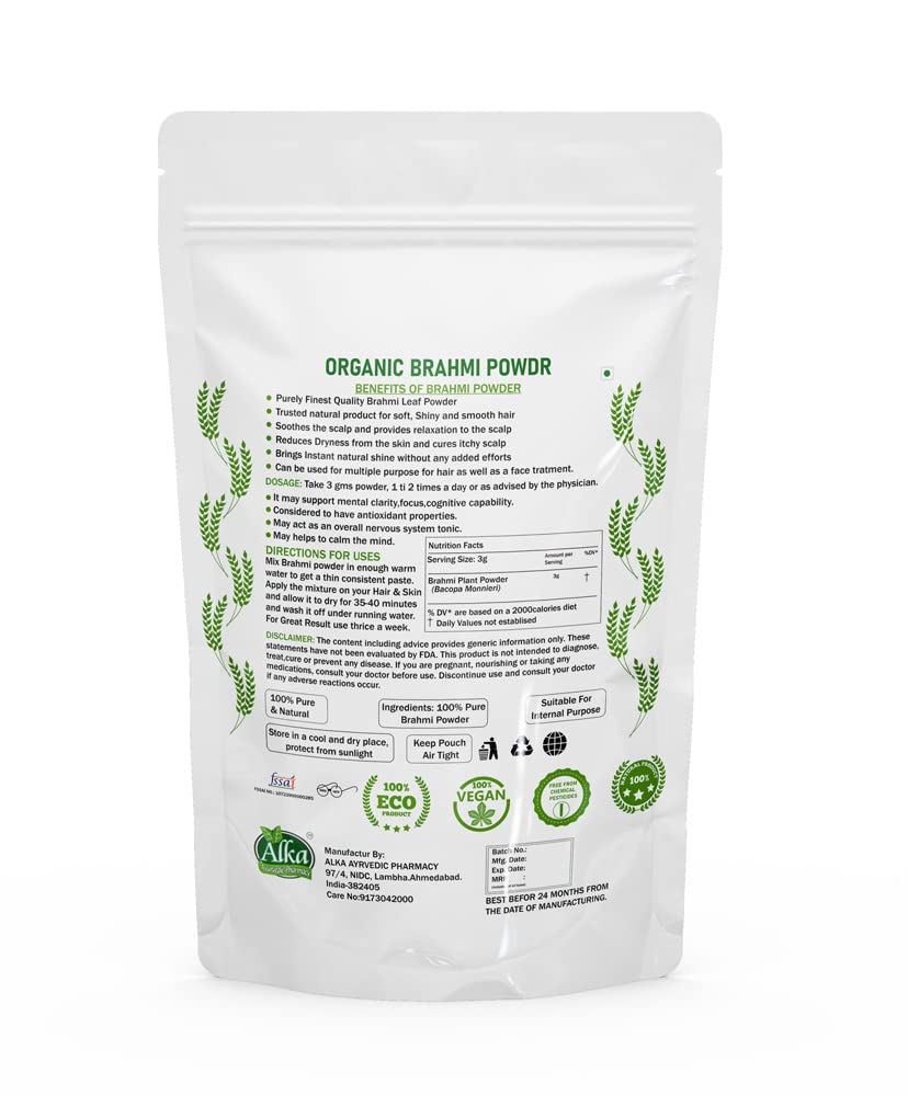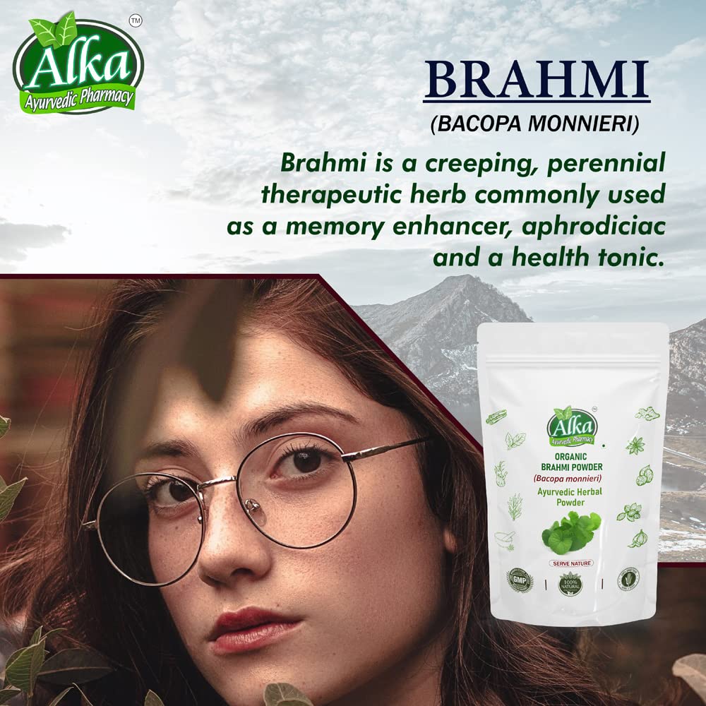 Organic and Natural Grown in the wetlands of Southern and Eastern India Brahmi is a highly revered ayurvedic herb acclaimed as a potent mental tonic (nootropic) Brahmi literally means 'that which improves intelligenceâ. Srotamsi Brahmi Powder is made using 100% Organic herb and is free from any artificial chemicals or colors It is known to improve certain brain chemicals that are involved in thinking learning and memory thus enhancing cognitive abilities. It is also known for effective skin and hair care. Brahmi can nourish the scalp efficiently and turns it healthier. The presence of antioxidants help to dispel toxins from the body. Regular consumption may help in maintaining overall healthy body and mind. It is known to rejuvenate the mind and can provide better concentration to relax our mind. This supports in the management of stress & anxiety. Being in natural powder form without any additives it can be used for both consumption and hair and skin care.