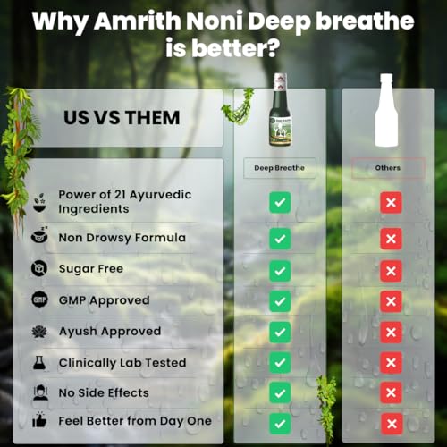 HomeHealth & PersonalDiet & NutritionHerbal FormulationsAmrith Noni Deep Breathe Liquid - 200ml | Ayurvedic Asthama Care Juice | With the goodness of Vasa, Yashtimadhu, Pippali, Kantakari, Khadira, Shunti, Maricha, Lavanga and more Herbs (Pack of 1)