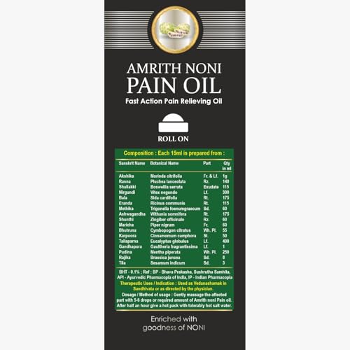 Amrith Noni Power Plus 500ml + Pain Roll On 50ml - Organic Noni Fruit Juice for Strengthening Immunity & Ayurvedic Pain Relief for Back, Joint, Knee & Muscle