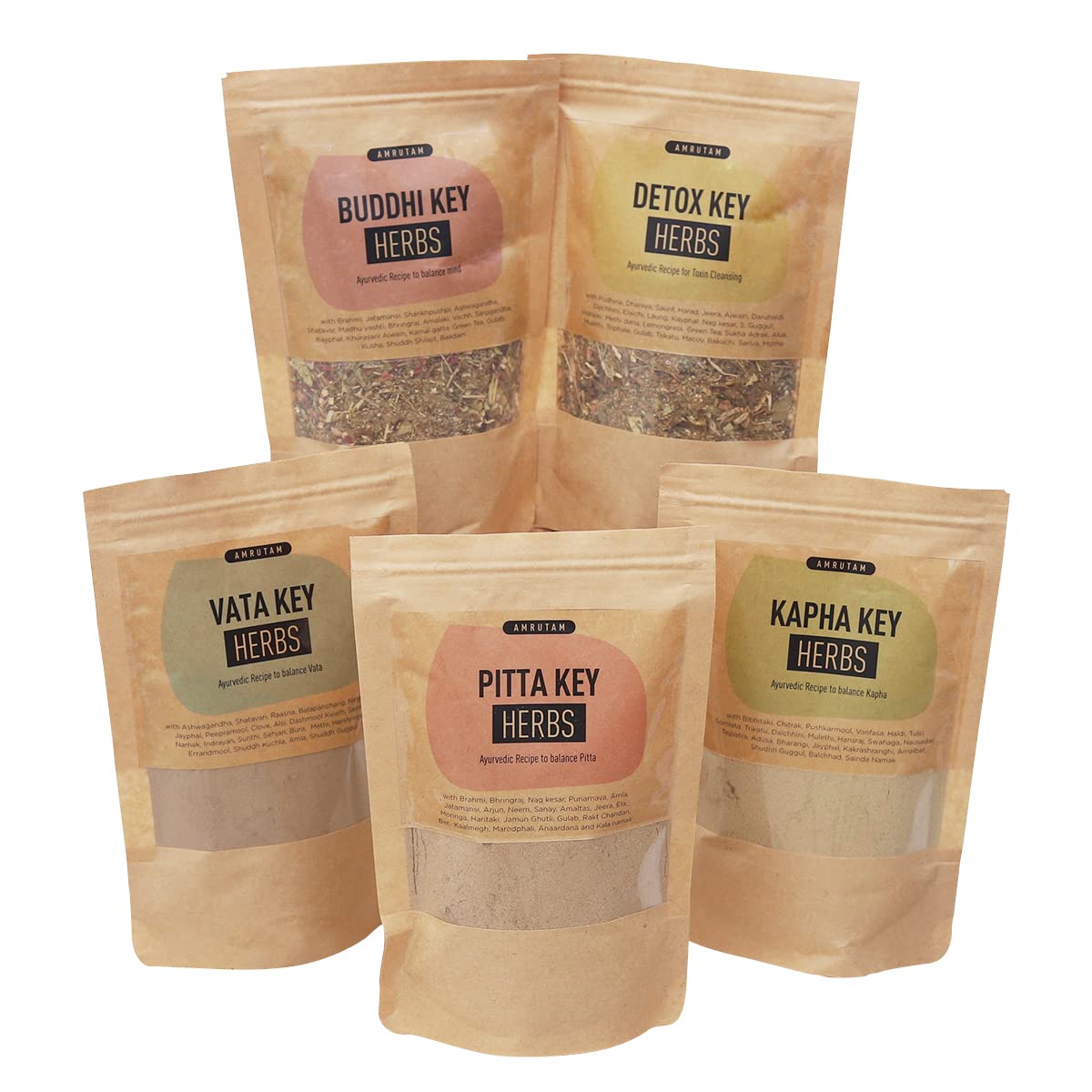 The AMRUTAM Herbs Combo is a collection of carefully curated herbal formulations designed to support various aspects of health and well-being. This combo includes Pitta Key Herbs Vata Key Herbs Kapha Key Herbs Detox Key Herbs and Buddhikey Herbs providing a holistic approach to balance and nourish different body types and promote overall wellness. Discover the power of Ayurvedic herbs in supporting your unique health needs.