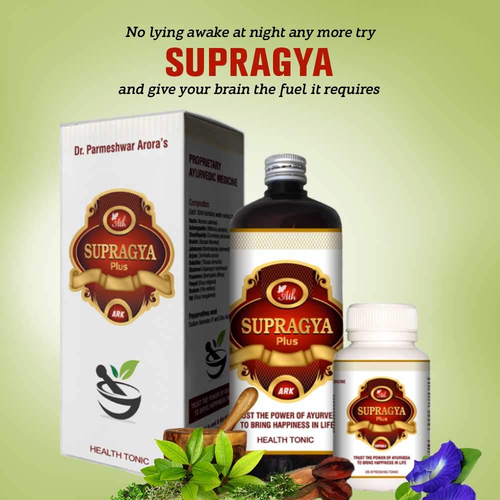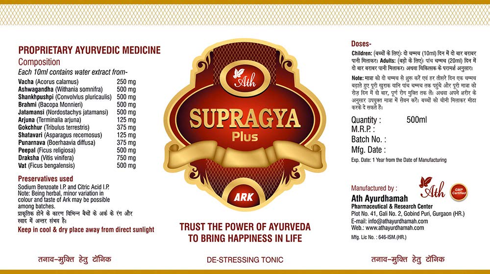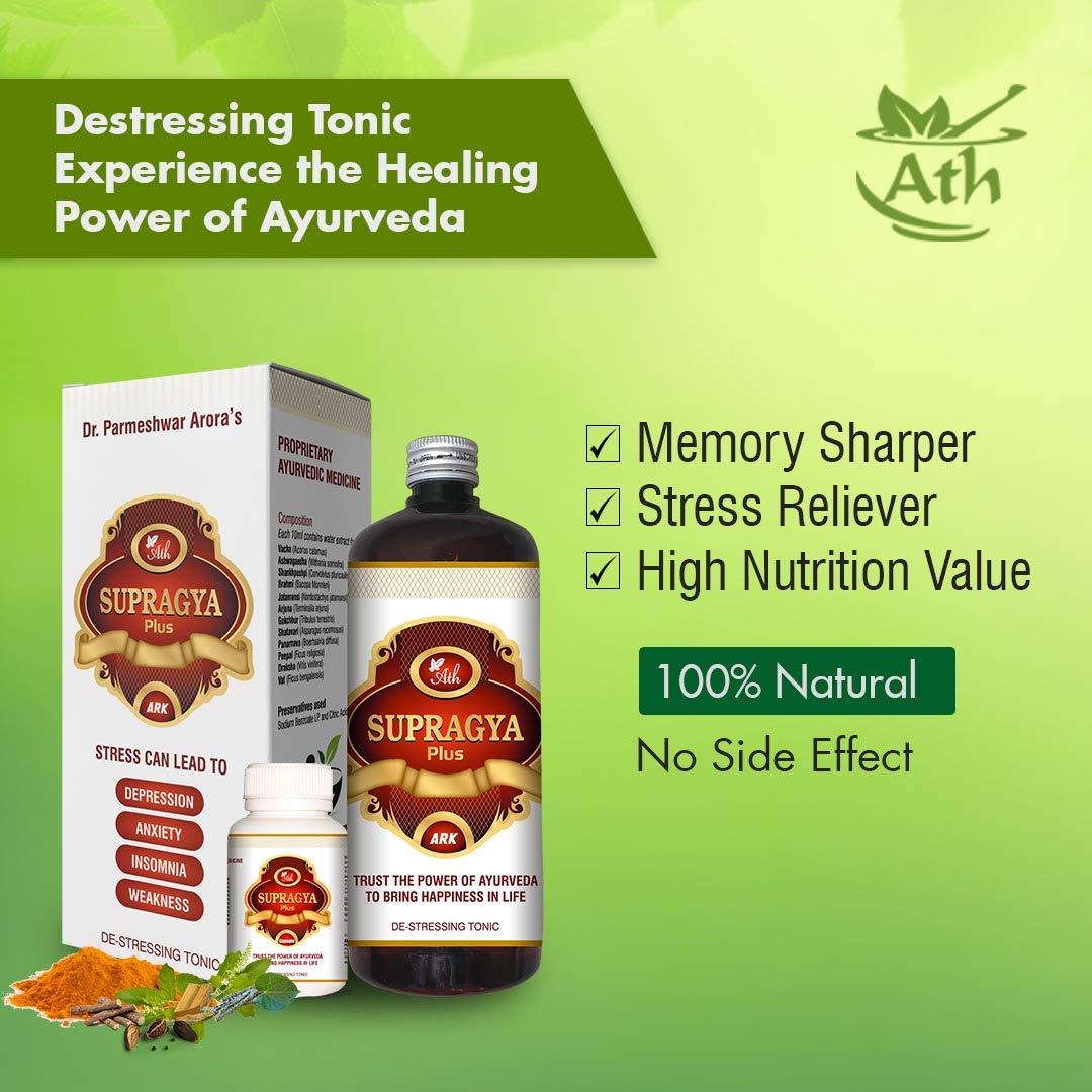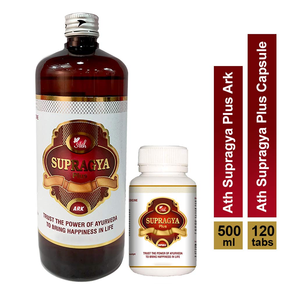 Ath Supragya Plus Ayurvedic Tonic + Supragya Plus Capsule | Herbal Brain Booster Tonic With Capsule | Natural Health Tonic With Capsules For Adults (500 ML) ( 1 Month Pack - 3 bottles + 120 Capsules ) Good Health Capsule and Ark