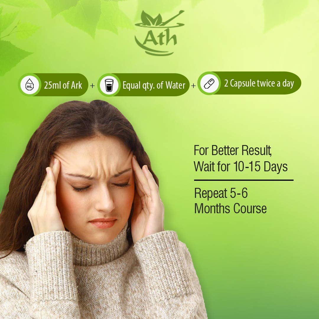 Dose :-25 ml of Ark + equal qty of water + 2 capsules = twice-a-day. For best results wait for 15-20 days. continue the course for 5-6 months.