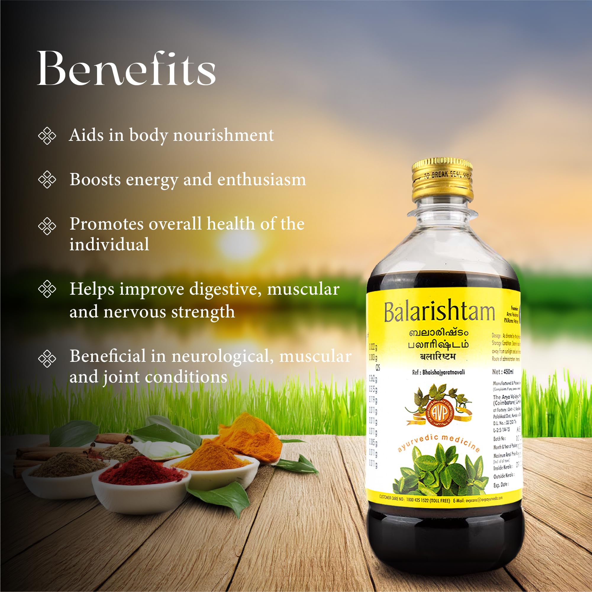 An exquisite blend of herbs for revitalising and strengthening the body! AVP Balarishtam is delicately curated with ingredients to improve nervous muscular and digestive strength while nourishing the body.