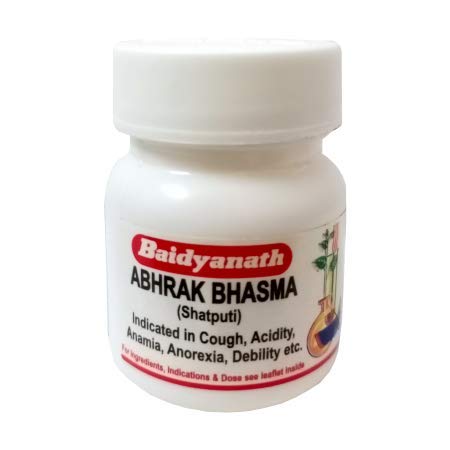 Baidyanath Abhrak Bhasma () more potent than Abhrak bhasma. It is time tested classical ayurvedic formulation prepared from mica and juices of several other indigenous drugs. Abhrak Bhasma supports respiratory health and for chronic cough and weakness. Also used as haematinic. Provides adequate energy and also has a calming effect on the body. Abhrak bhasma () has been incenerated 100 times after production.