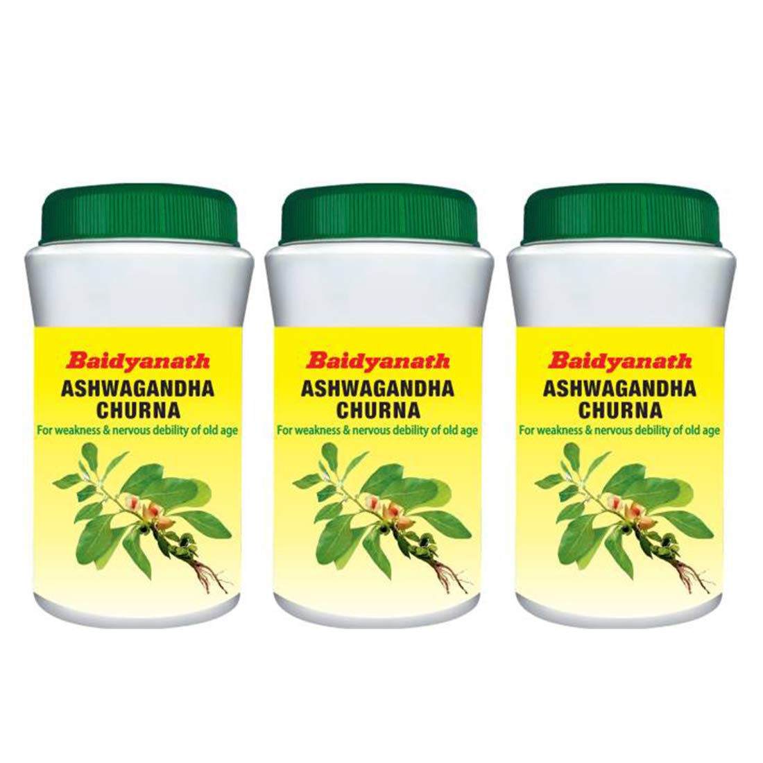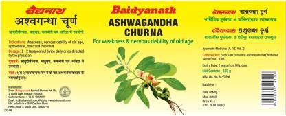 Baidyanath Ashwagandhadi Churna is a herbal tonic that helps calm the mind and relaxes the body by combatting fatigue. It helps combat general debility nervousness and anxiety. Ashwagandha and Vidara Beej are known to combat insomnia boost energy and increase stamina and vitality. Baidyanath Ashwagandhadi Churna is made using organically sourced herbs. Consume 1 to 2 teaspoon twice a day with milk or water or as directed by the physician.