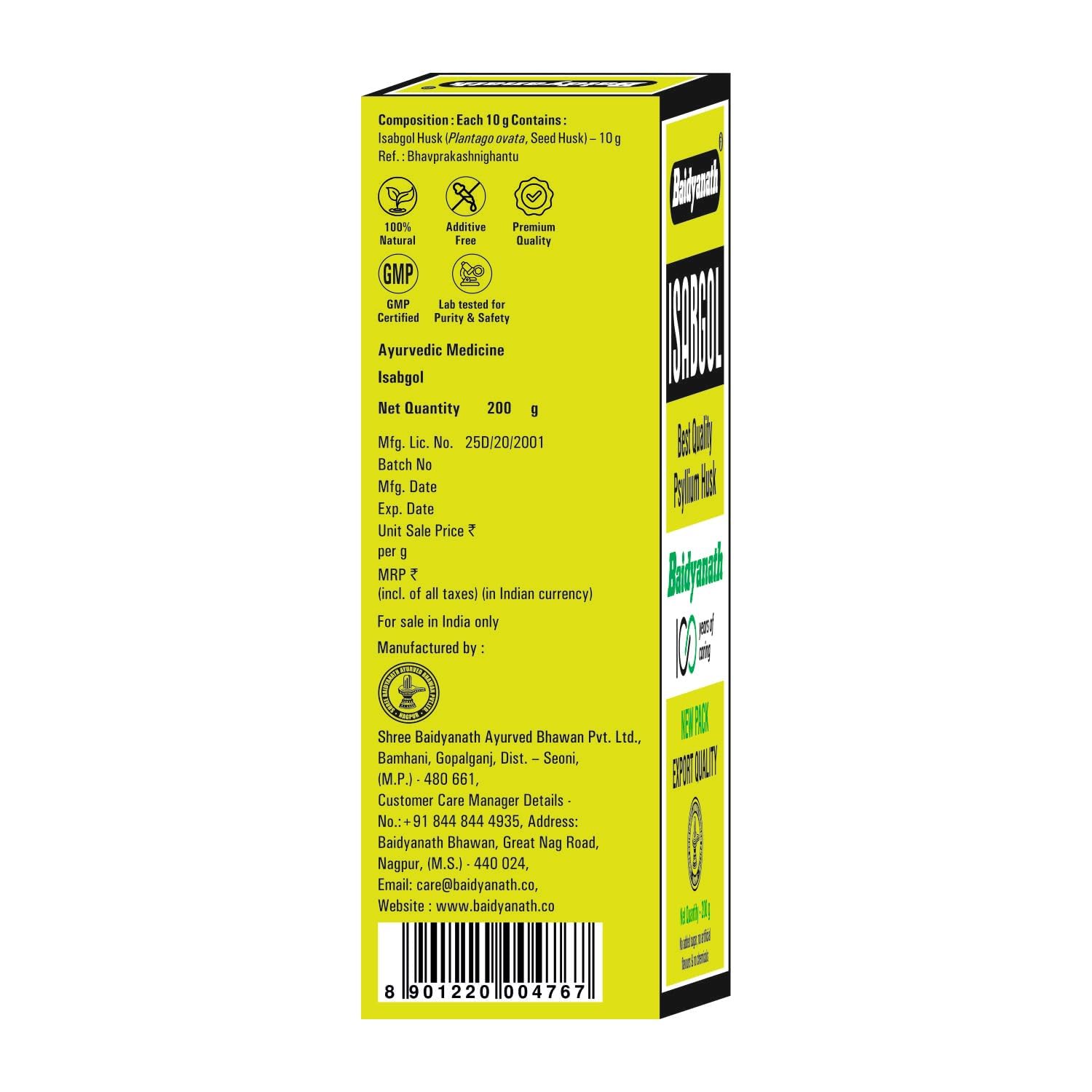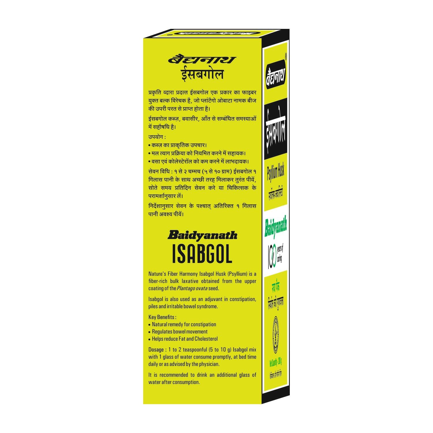 Fiber-rich Gut support: Baidyanath Isabgol is a premium-quality Psyllium husk obtained from the upper coating of the Plantago ovata seed. It is a fiber-rich bulk laxative that has been time-tested for healthy gut offering gentle and effective support for