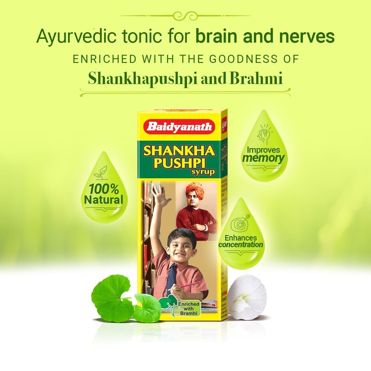 Baidyanath Asli Ayurved Shankhapushpi Syrup is a natural herbal supplement formulated with Shankhapushpi and Brahmi two key ingredients in traditional Ayurvedic wellness practices. This syrup is designed to support general mental well-being offering a natural option to promote mental clarity and focus as part of a healthy lifestyle. Crafted from carefully selected herbs Baidyanath Shankhapushpi Syrup follows Ayurvedic principles for maintaining balance in the body and mind. The formula is free from artificial additives and chemicals making it a safe and natural choice for individuals seeking to enhance their overall mental well-being.Whether used as part of a daily wellness routine or to complement a balanced lifestyle this syrup offers a simple herbal option to support mental clarity and focus. Available in a 450 ml (Pack of 2) it provides long-lasting value and convenience for daily use.