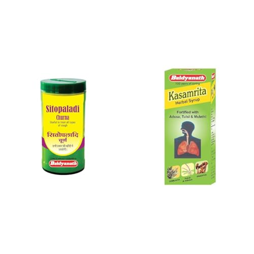 Baidyanath Asli Ayurved Sitopaladi Churna | Useful In All Types Of Cough - 60 G & Baidyanath Kasamrit Herbal Cough Syrup - 100 ml With Goodness of Adusa Tulsi & Mulethi