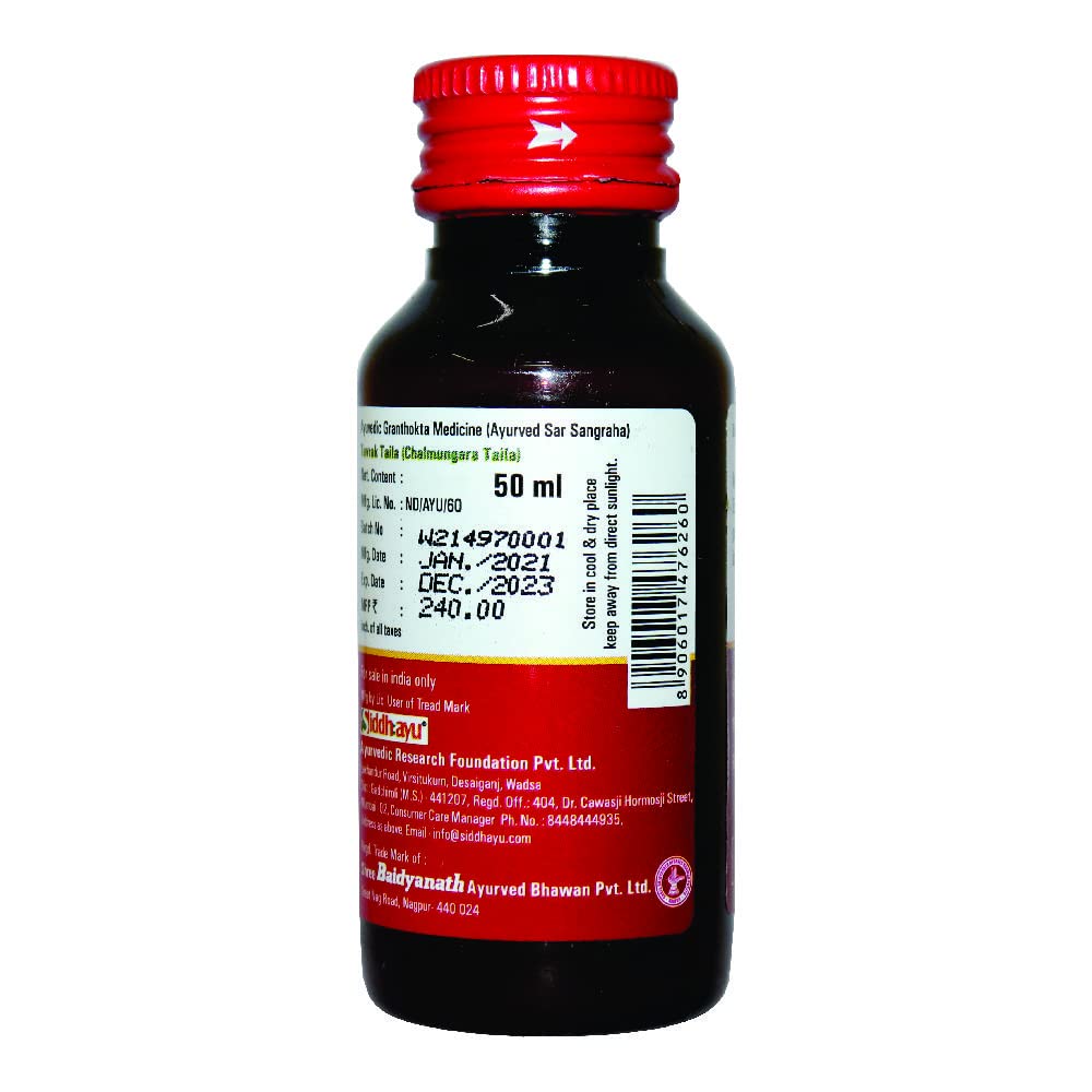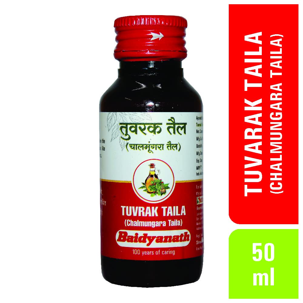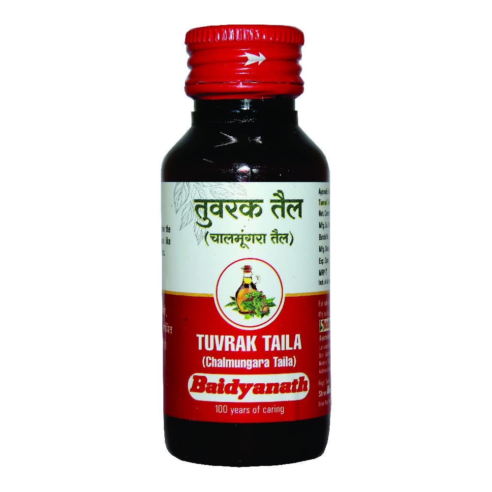 Baidyanath Tuvrak Taila Chalmungara Taila-50 Ml. One of India;s most respected Companies Shree Baidyanath Ayurved Bhawan Pvt. Ltd. (Nagpur) popularly known as Baidyanath is the acknowledged leader of Ayurvedic know-how. Established in 1917 the Company has played a pioneering role in re-establishing ancient knowledge with modern research and manufacturing techniques. AYURVEDA is a 5000 year old Science of health care and herbal treatment. AYURVEDA is highly effective in common and complicated ailments assures long term relief and has no side effects. AYURVEDA is now backed by modern scientific research and technologies and provides its gentle healing touch to millions around the world.