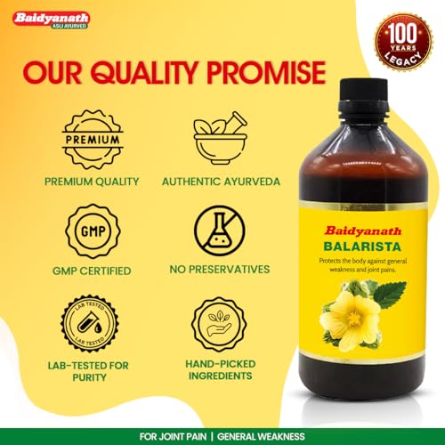 Supportive of neurological health providing relief from conditions like neuralgia arthritis and spondylosis. Widely regarded as therapeutic for arthritic disorders and spinal conditions can help in the management of cervical spondylosis frozen shoulder lower back pain knee pain due to osteoarthritis etc. Balarishta also has restorative action and improves body strength and nourishes the vata organs.