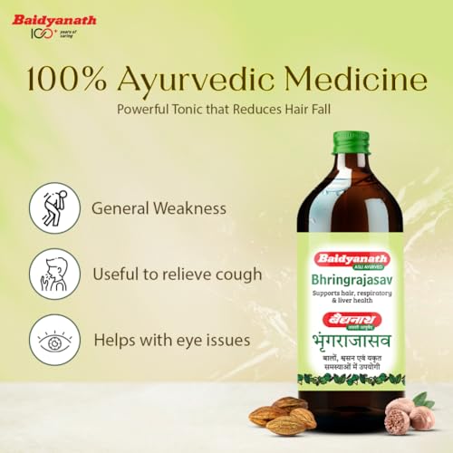 Baidyanath Bhringrajasav is a 100% Ayurvedic Tonic that helps fight hair fall problems & other ailments. It is useful to maintain your overall hair health & provides strong & nourished hair. It helps relieve cough & manage general fatigue. It is also useful for the treatment of eye diseases
