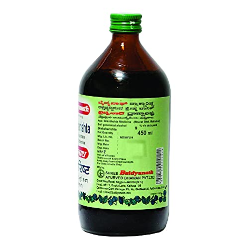 Baidyanath Draksharishta - 450 ml (Pack of 2) - Ayurvedic Syrup for Appetite Physical Strength| Useful in Cold & Cough