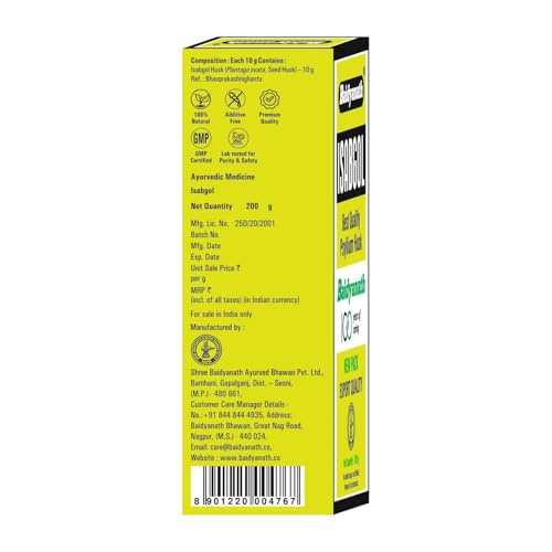 FIBER-RICH GUT SUPPORT: Baidyanath Isabgol is a premium-quality Psyllium husk obtained from the upper coating of the Plantago ovata seed. It is a fiber-rich bulk laxative that has been time-tested for healthy gut offering gentle and effective support for