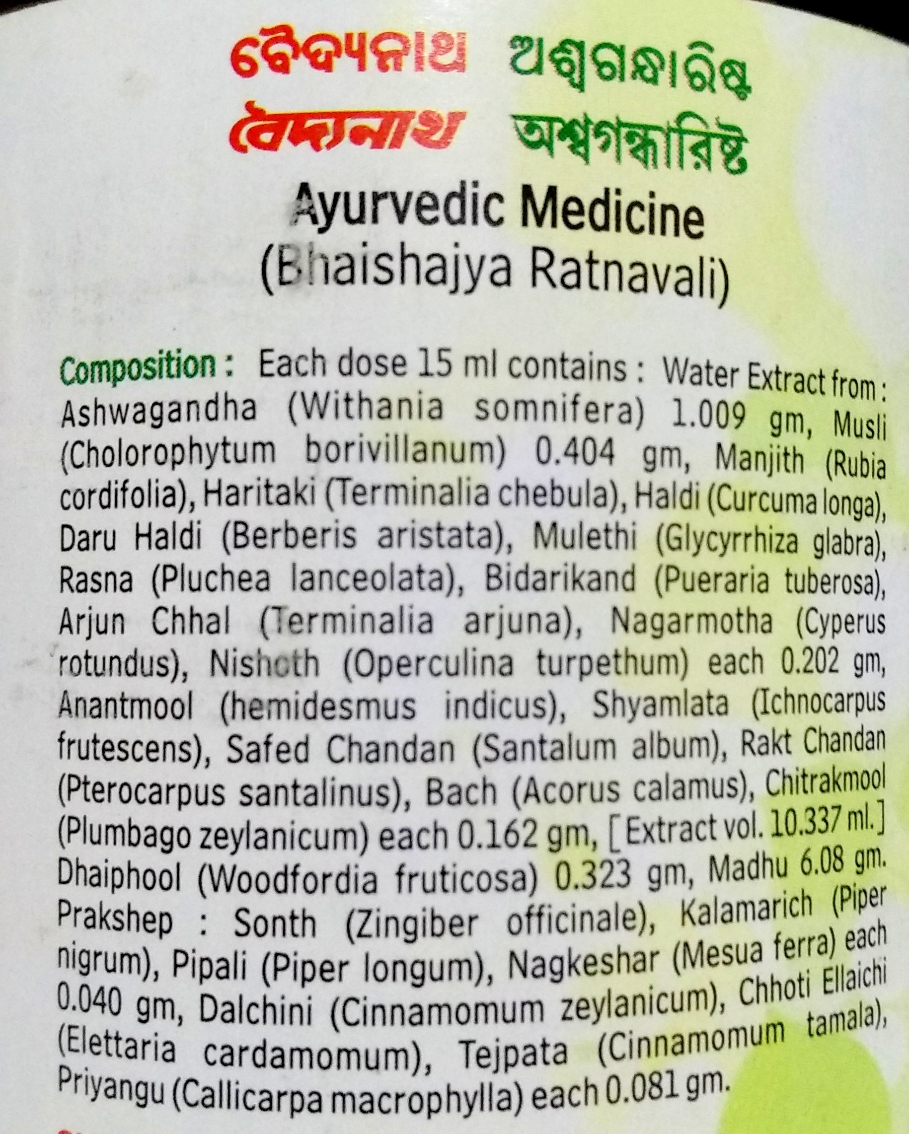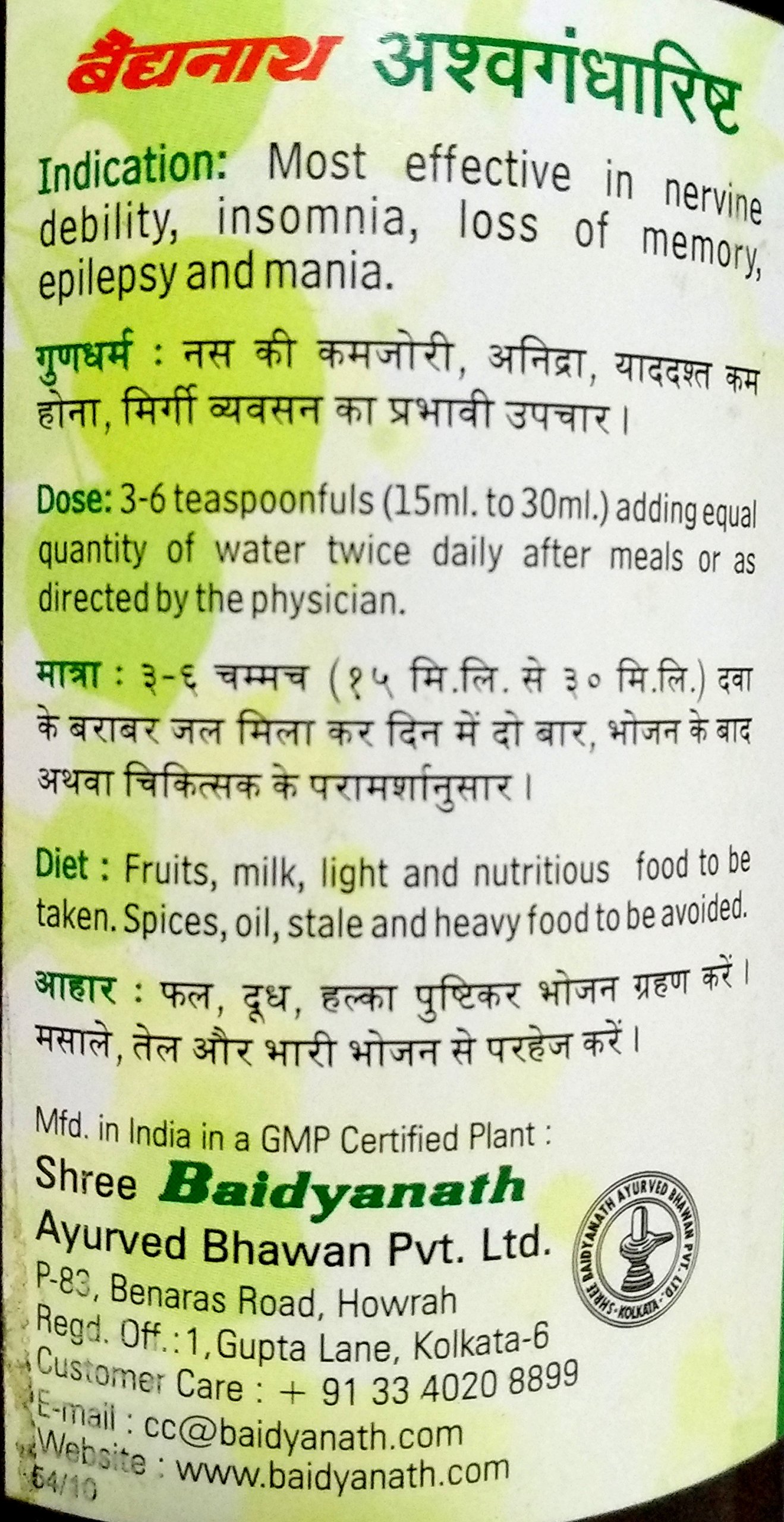 • Package Contents: 1 X Baidyanath Ayurvedic Ashwagandharishta