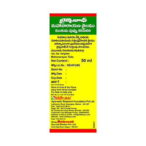 Baidyanath Mahanarayan Taila, Joint Pain Relief Oil, Natural, 50 ml, Pack of 2