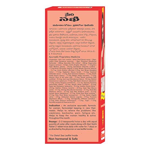 Meri Sakhi is an exclusive nonhormonal and safe formula for women formulated keeping in view their needs. Helps to relieve problems like weakness bachache pain fatigue etc. Helps to keep the women healthy and active throughout the month.