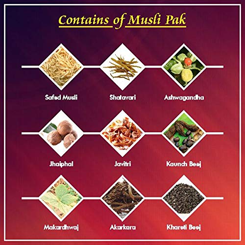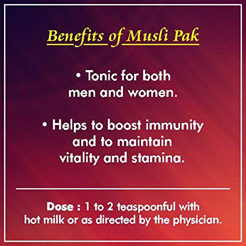 Musli Pak is ideal for anyone looking to rekindle romance in their conjugal life. The Musli Pak from Baidyanath contains Safed musli ashwagandha jhaiphal javitri kaunch beej makardhwaj akarkara khareti beej and other invigorating components.