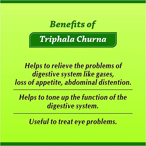 Baidyanath Triphala Churna 500 g â Pack of 2 is an incredible natural cure that comprises of Haritaki Bibhitaki and amalaki. Base salt and acid blended powder is warm in nature digestible tasteful and enhances the hunger.