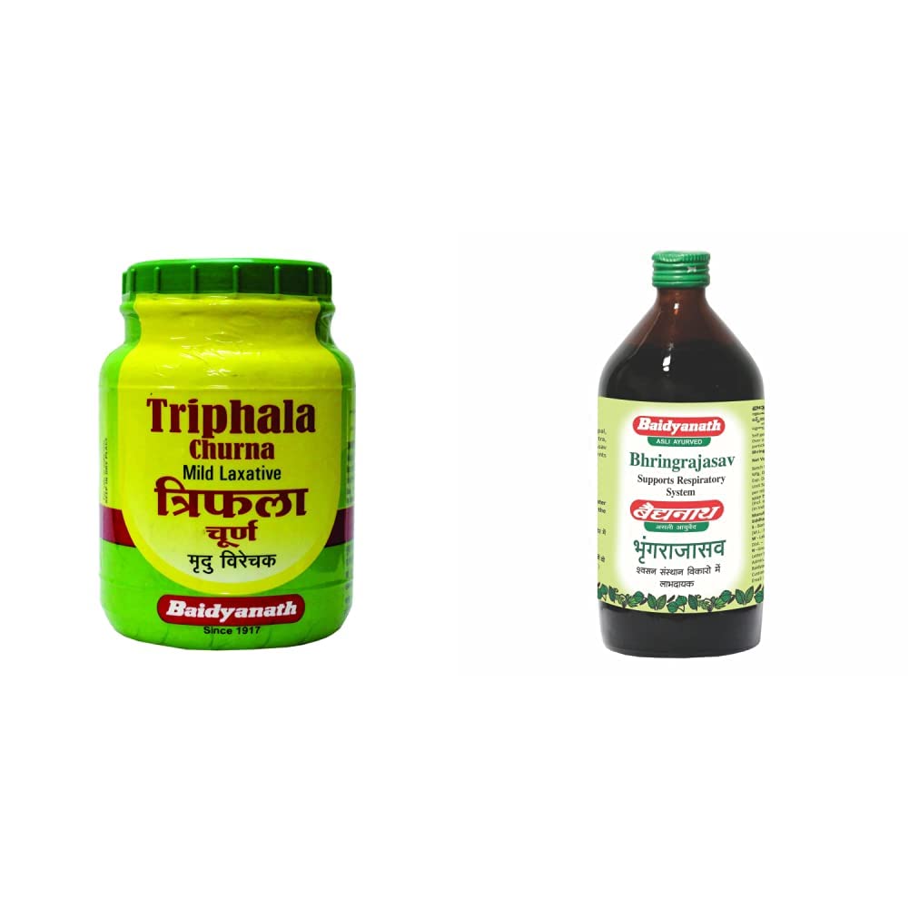 Baidyanath Nagpur Triphala Churna Vitamin C Iron & Zinc Natural 500 gBaidyanath Triphala Churna 500 g is an incredible natural cure that comprises of Haritaki Bibhitaki and amalaki. Base salt and acid blended powder is warm in nature digestible tasteful and enhances the hunger.Baidyanath Bhringrajasava 450 ml SyrupIt's a classical ayurvedic formulation