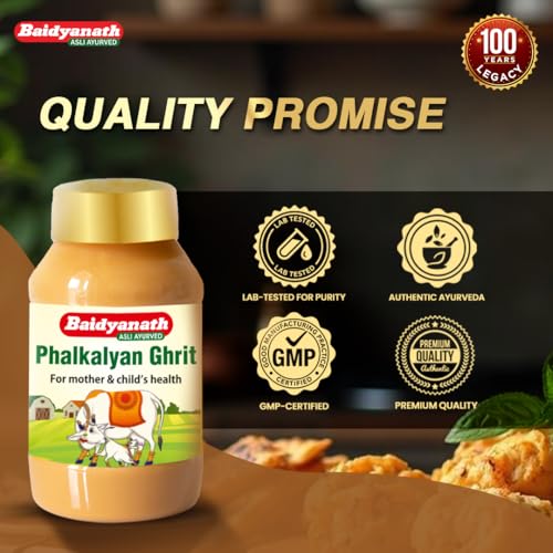 Baidyanath Phalkalyan Ghrita is known as an endocrinal stimulant that helps maintain a healthy uterus. It is a traditional ayurvedic ptoduct for women for fertility and health. Consume 3-12gms with milk twice a day or as directed by an Ayurvedic practitioner.
