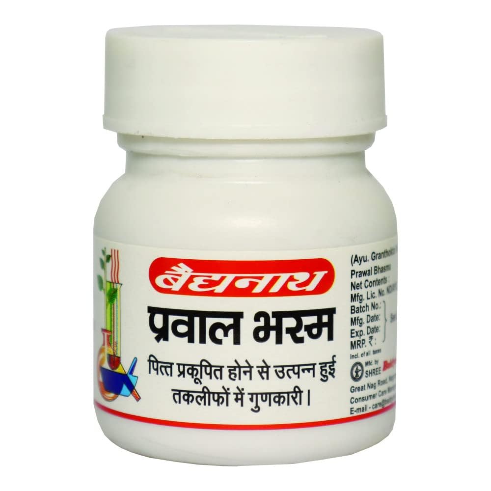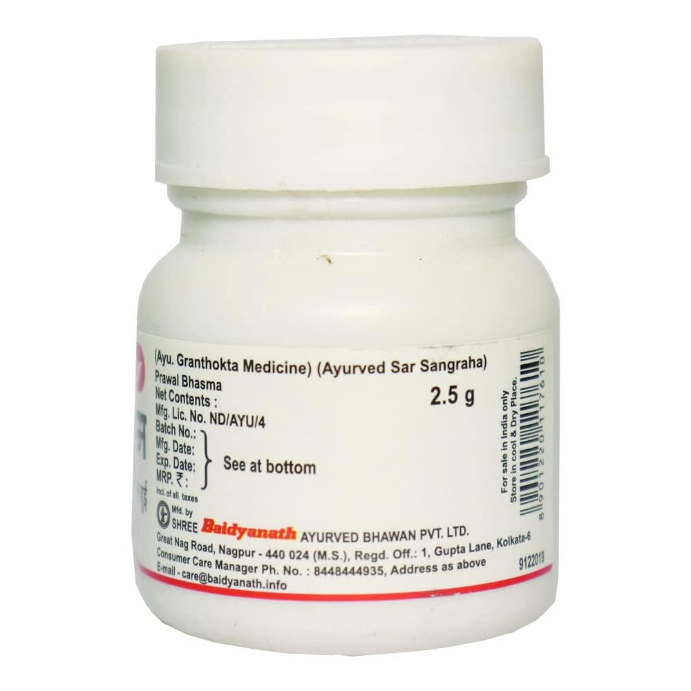 Baidyanath Prawal Bhasma-2.5 Gm (Pack Of 2). One of India;s most respected Companies Shree Baidyanath Ayurved Bhawan Pvt. Ltd. (Nagpur) popularly known as Baidyanath is the acknowledged leader of Ayurvedic know-how. Established in 1917 the Company has played a pioneering role in re-establishing ancient knowledge with modern research and manufacturing techniques. AYURVEDA is a 5000 year old Science of health care and herbal treatment. AYURVEDA is highly effective in common and complicated ailments assures long term relief and has no side effects. AYURVEDA is now backed by modern scientific research and technologies and provides its gentle healing touch to millions around the world.