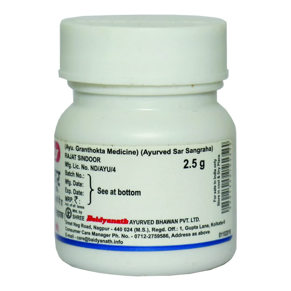 Baidyanath Rajat Sindoor-2.5 Gm. One of India;s most respected Companies Shree Baidyanath Ayurved Bhawan Pvt. Ltd. (Nagpur) popularly known as Baidyanath is the acknowledged leader of Ayurvedic know-how. Established in 1917 the Company has played a pioneering role in re-establishing ancient knowledge with modern research and manufacturing techniques. AYURVEDA is a 5000 year old Science of health care and herbal treatment. AYURVEDA is highly effective in common and complicated ailments assures long term relief and has no side effects. AYURVEDA is now backed by modern scientific research and technologies and provides its gentle healing touch to millions around the world.