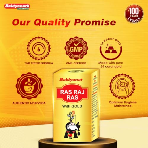 Baidyanath Rasraj Ras with Gold | Ayurvedic Blend for Nerve & Muscle Support | Neuro-Muscular Care | 10 Tablets