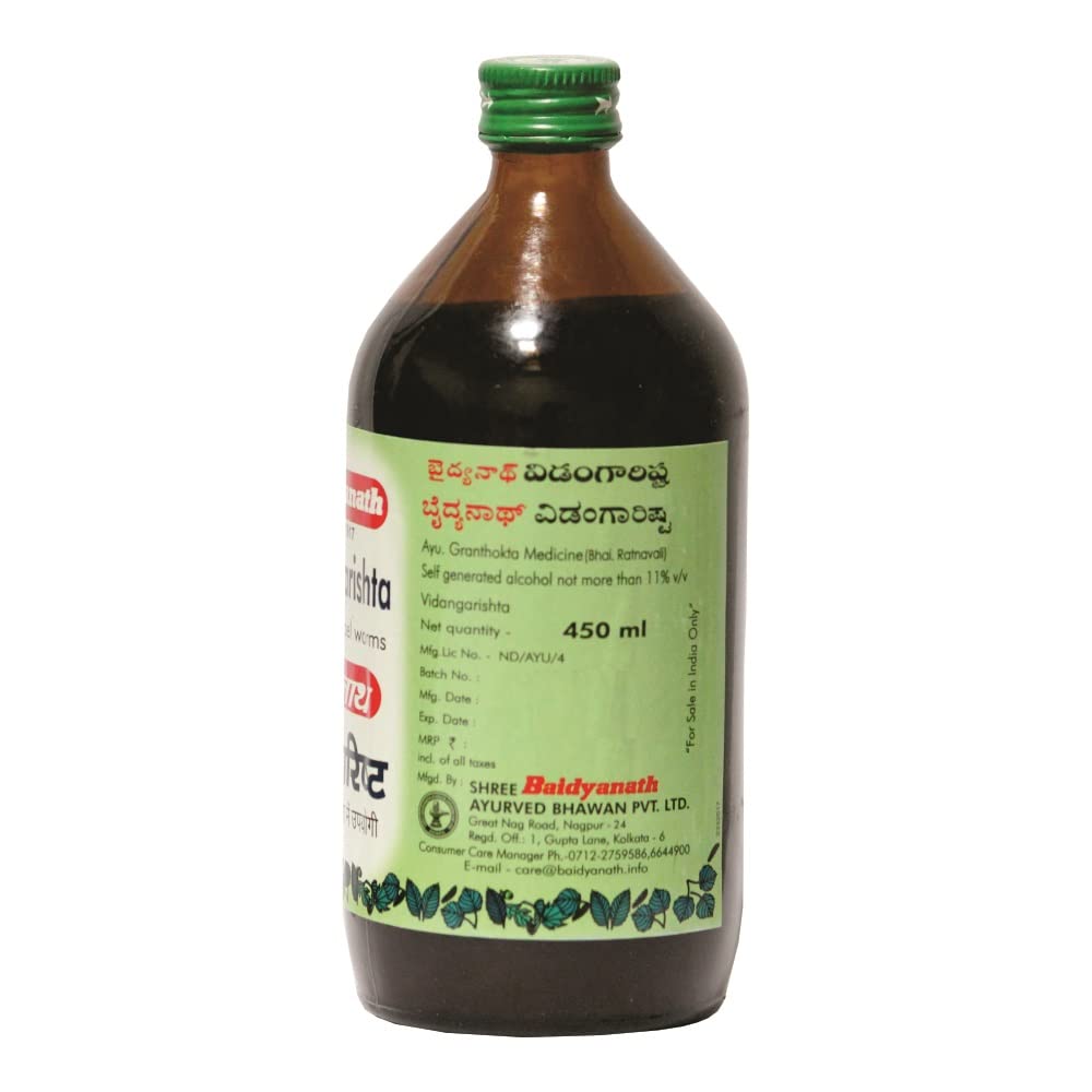 Baidyanath Vidangarishta-450 Ml (Pack Of 2). One of India;s most respected Companies Shree Baidyanath Ayurved Bhawan Pvt. Ltd. (Nagpur) popularly known as Baidyanath is the acknowledged leader of Ayurvedic know-how. Established in 1917 the Company has played a pioneering role in re-establishing ancient knowledge with modern research and manufacturing techniques. AYURVEDA is a 5000 year old Science of health care and herbal treatment. AYURVEDA is highly effective in common and complicated ailments assures long term relief and has no side effects. AYURVEDA is now backed by modern scientific research and technologies and provides its gentle healing touch to millions around the world.