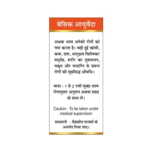 • Direction for use: It is recommended to take ½ to 1 pinch of Abhrak bhasma in 1 teaspoon of honey or as directed by Ayurvedic doctor. Always adhere to the dosage recommended by the ayurvedic doctor or healthcare expert.
