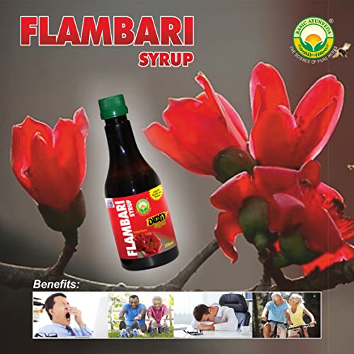 • Flambari Syrup contains a potent combination of the herbs Ashwagandha Methi Vidarikand Shatavari Gokhru Semel Phool Munakha Anar Dana Kaunch Safed Musli Brahmi and Kesar.